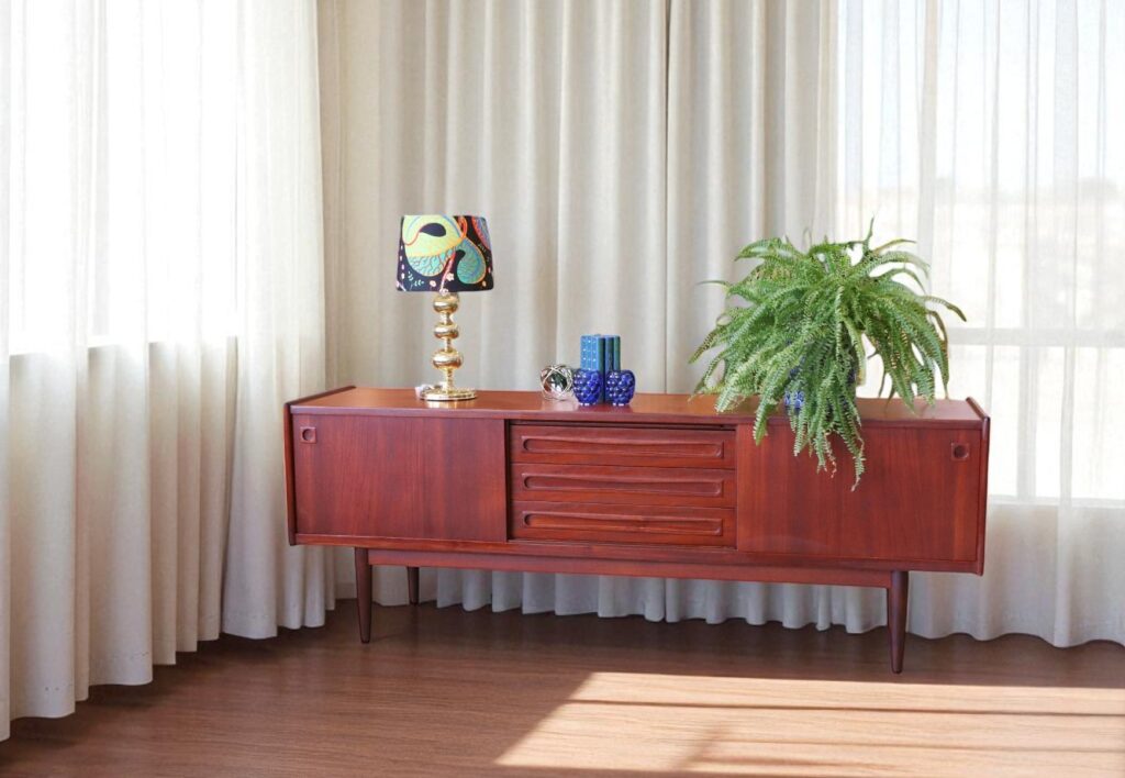 Sideboardet har genomgått en noggrann och detaljerad renovering där hela ytorna är noggrant nyfanererade, vilket ger det en elegant och tidlös finish som kommer att hålla för lång tid framöver.