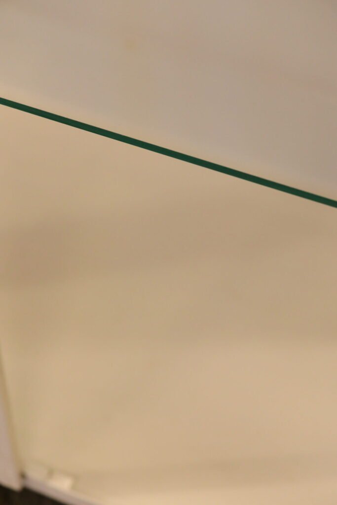 Skåpet är i målad metall och har två glasdörrar. Inuti skåpet finns tre hyllplan i glas som effektivt utnyttjar utrymmet och ger möjlighet till en optimal presentation av dina föremål. Det finns även tre robusta krokar i ryggen, ideala för att hänga upp exempelvis nycklar eller andra småsaker. Det är även möjligt att anpassa hyllplanen i skåpet, genom att använda hållarna som finns placerade var fjärde centimeter längs skåpets ytterkanter, ger stor flexibilitet för att maximera förvaringen. Kundbilderna nedan visar exempel på skåp med fyra och fem glashyllor, vilket illustrerar de olika möjligheterna för att styla och organisera ditt skåp på bästa sätt.