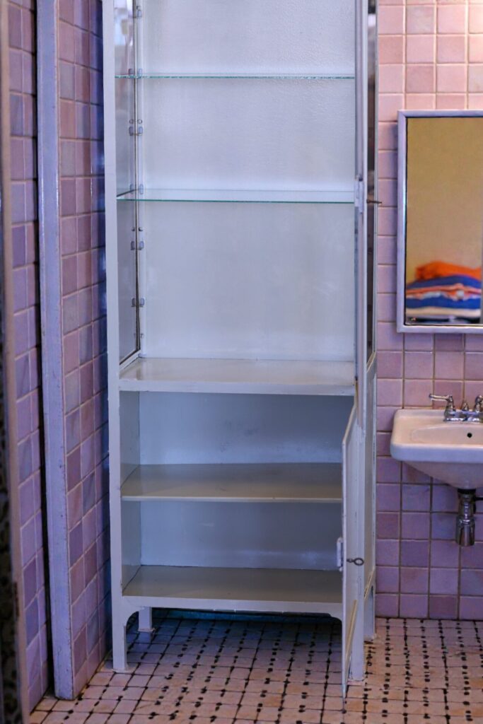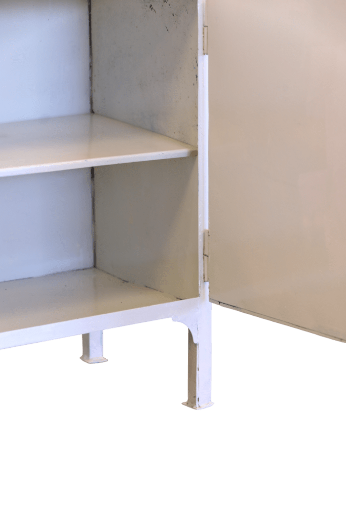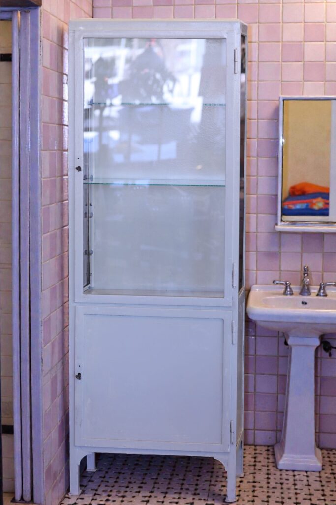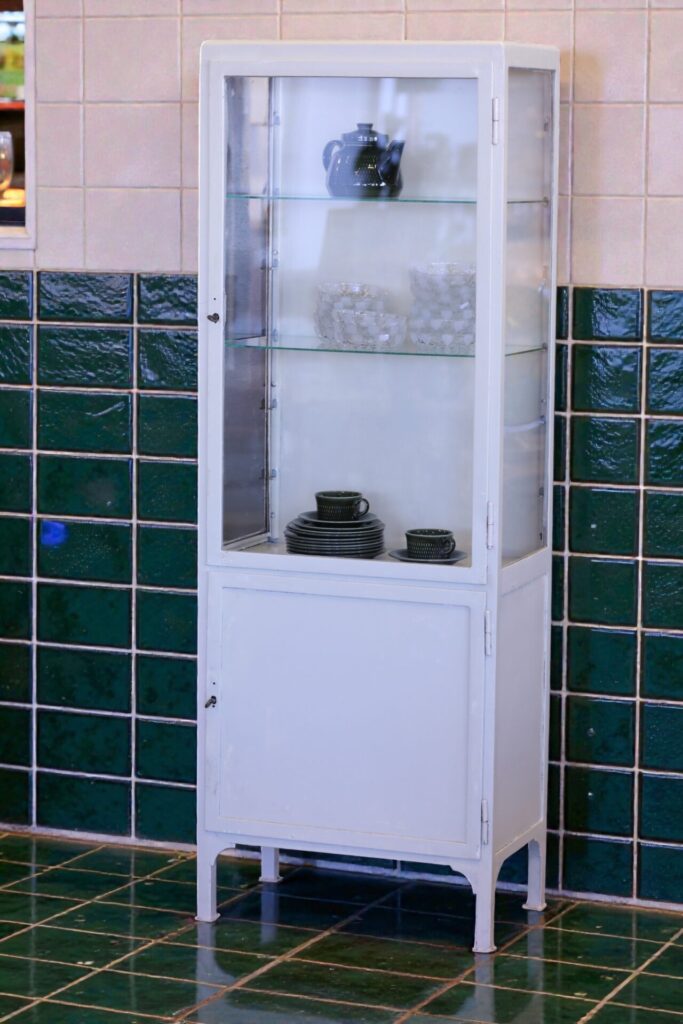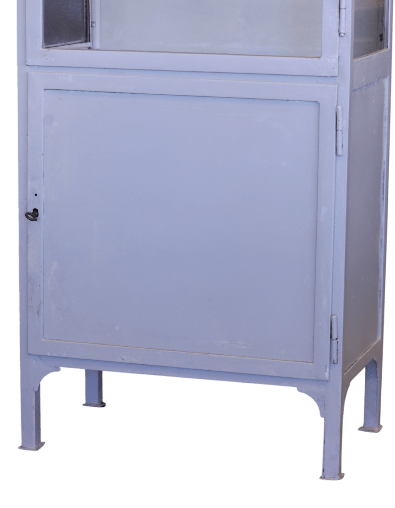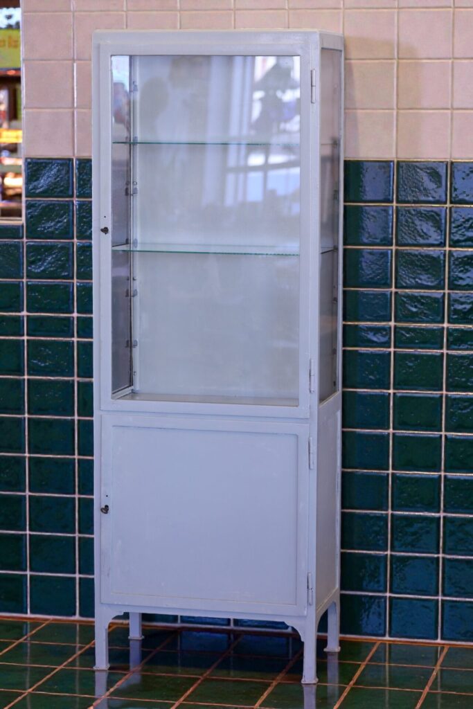 Ett underbart tandläkarskåp/läkarskåp i lackerad plåt och glas.