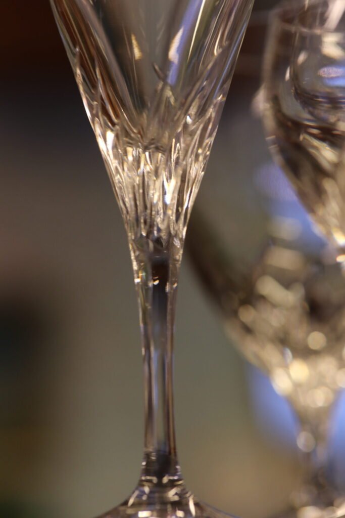 Kristallglas på fot med vacker diamantslipning. Glasen är från tyska företaget Nachtmann.