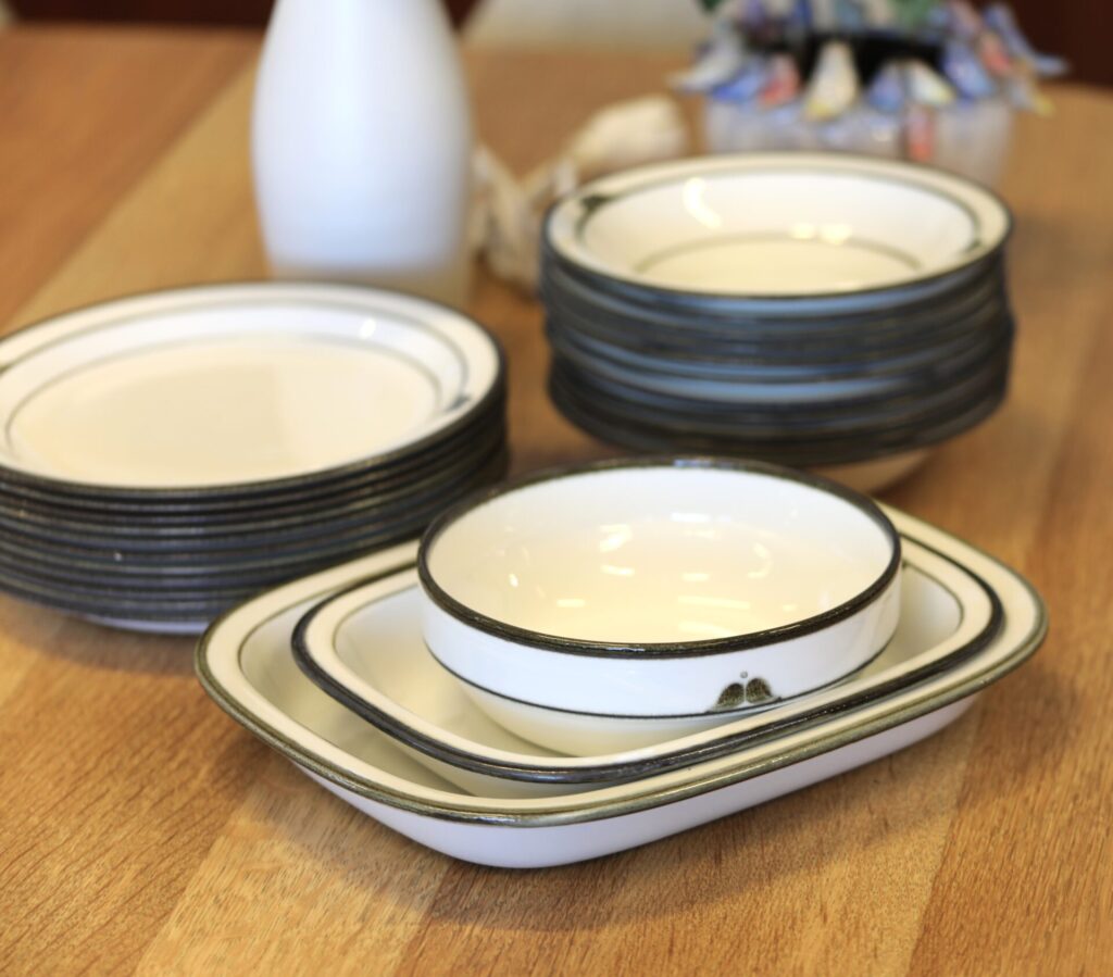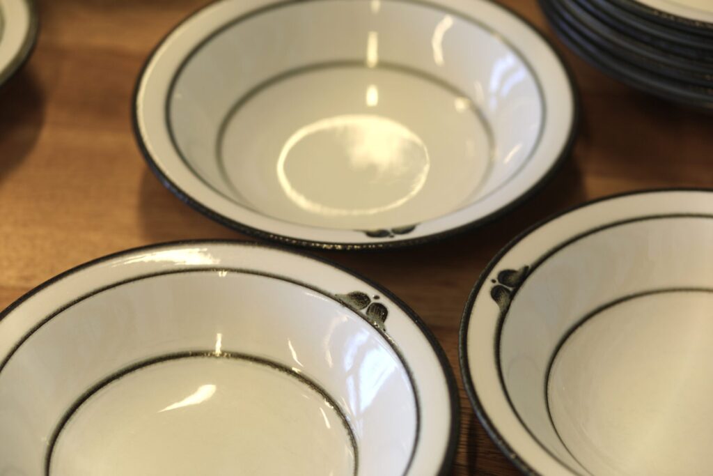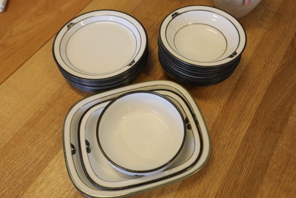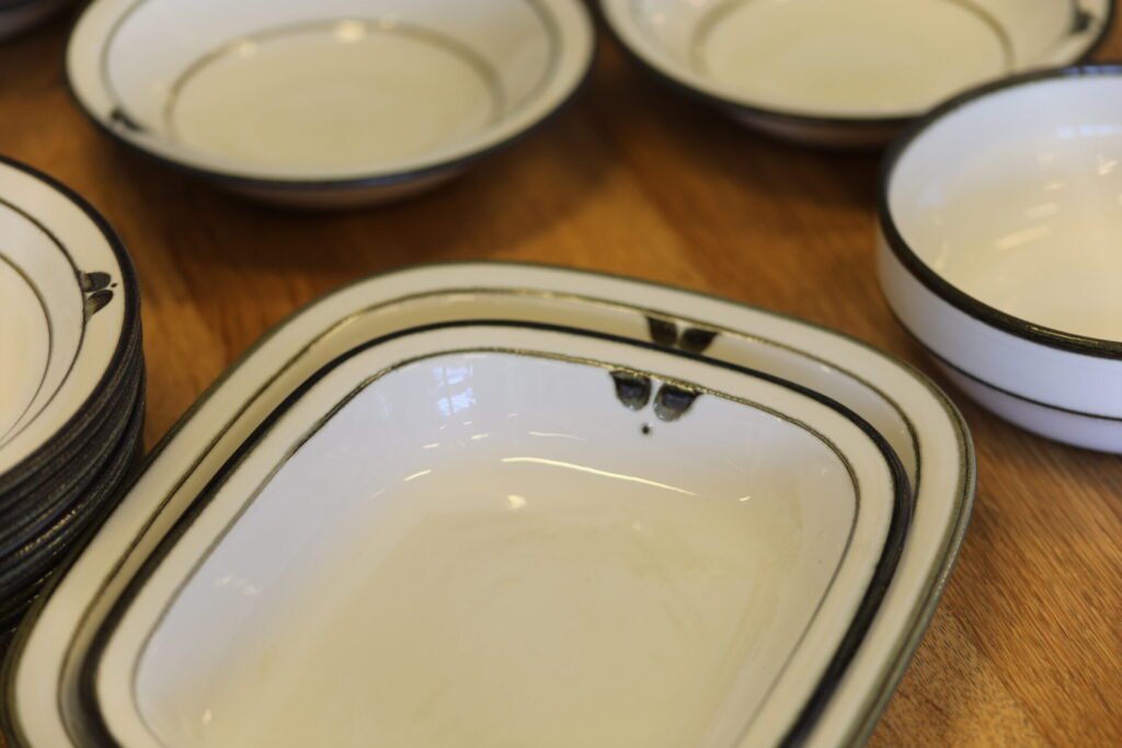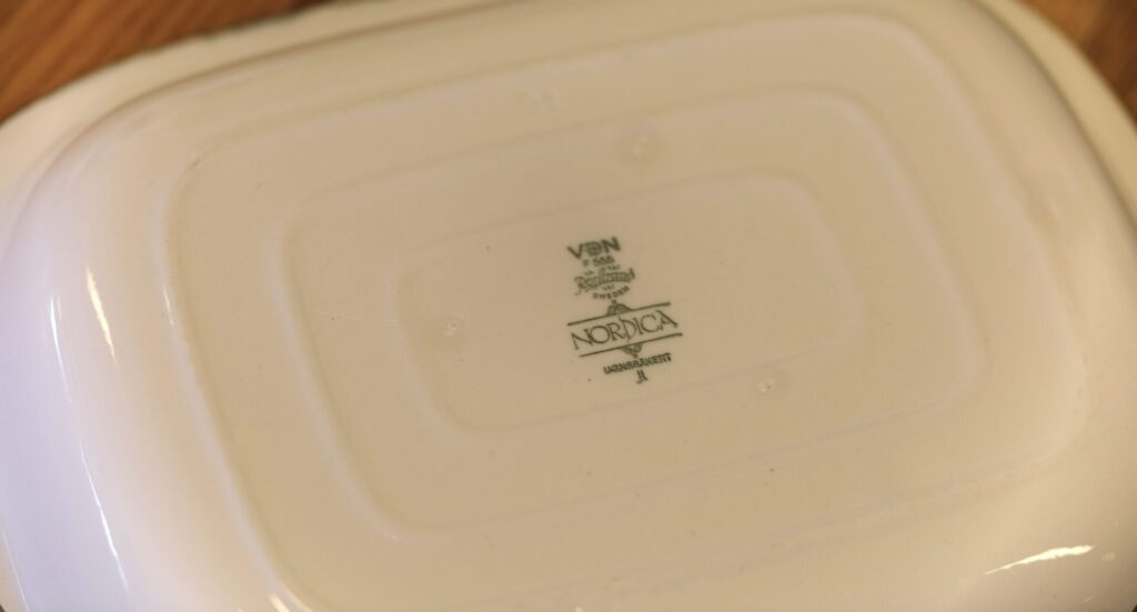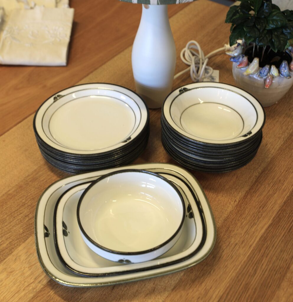 Matporslin i flintgods ur serien Nordica med dekor formgiven av Jacqueline ”Jacki” Lynd för Rörstrand.