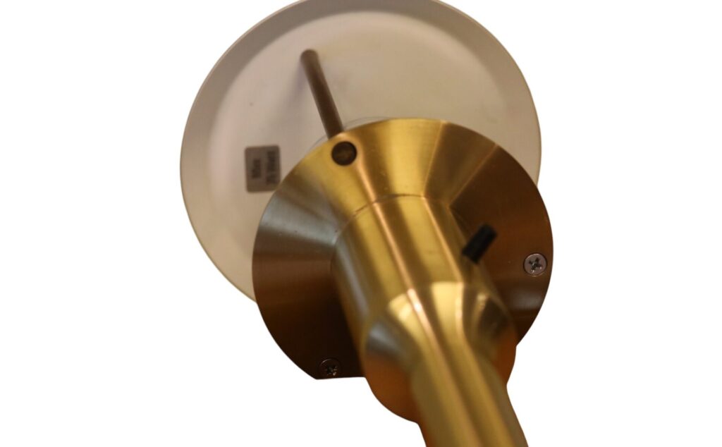 Lampan har trots sina många åt på nacken en mycket modern och stilren look som verkligen står ut i varje rum. Den har en rak och stram skärm i akryl som elegant toppas med en vacker mässingstrut. Den förkroppsligar en perfekt balans mellan minimalistisk design och lyxig känsla.