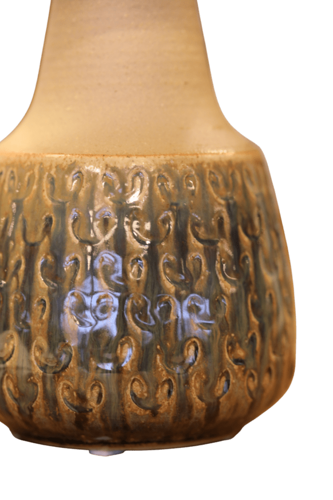 Foten har en glaserad nedre del som går i en vacker grönblå nyans och en oglaserad övre del i en mjuk och stilren beige ton. Kontrasterna ger ett härligt liv till lampfoten och gör den både elegant och mångsidig. Foten är dessutom lätt att kombinera med en mängd olika lampskärmar, och gör att den kan anpassas efter olika inredningsstilar och stämningar. Oavsett om du använder en modern, vintage eller klassisk lampskärm kommer lampfoten att lyfta hela rummet och bli ett blickfång i hemmet.