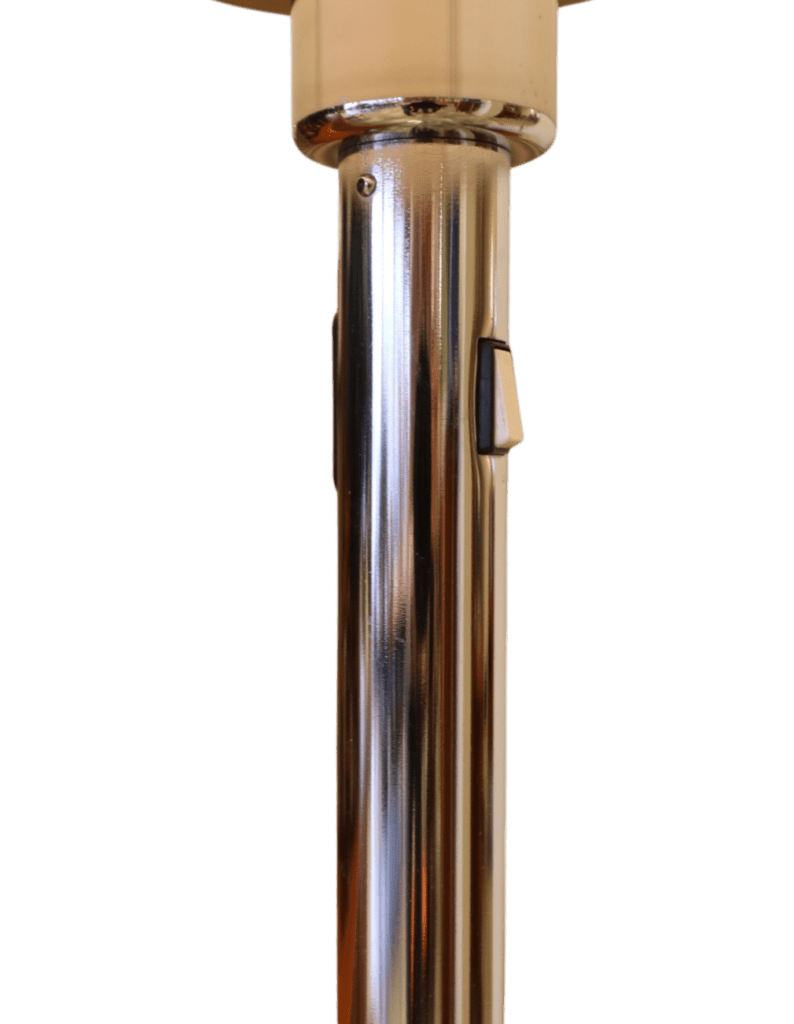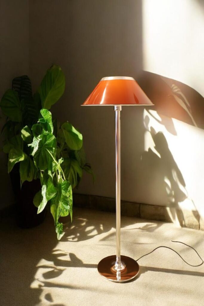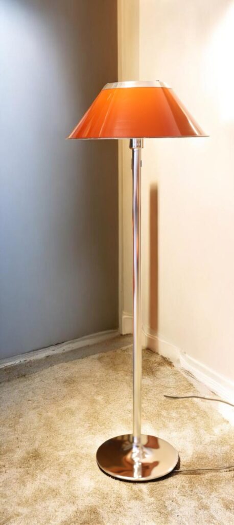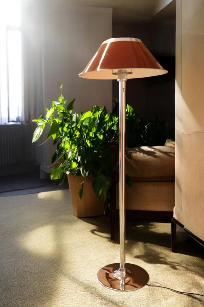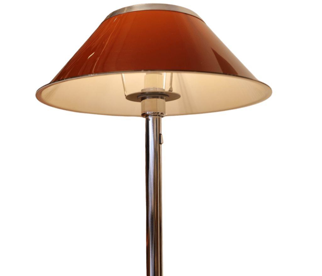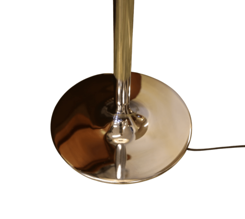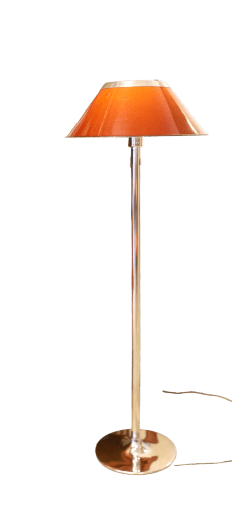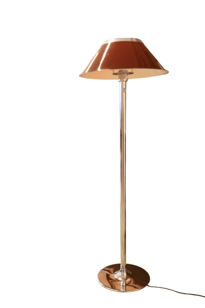 Golvlampan har en elegant fot i krom och en brun skärm med fina detaljer i krom som ger ett stilrent och exklusivt helhetsintryck. Lampan ger dessutom ett härligt, varmt ljus i rummet och skapar en inbjudande och stämningsfull känsla.