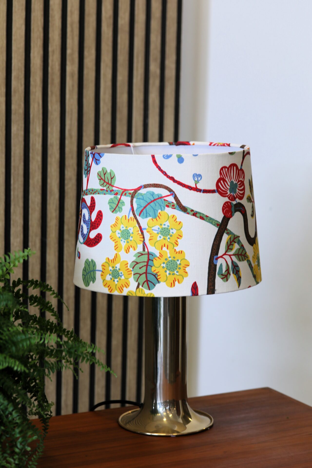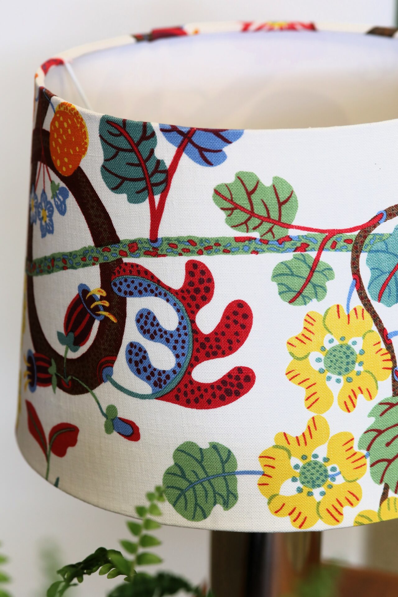 Handgjord lampskärm i linnetyget Baranquilla formgivet av Josef Frank för firma Svenskt Tenn.