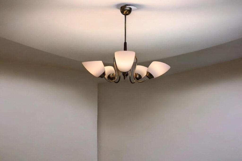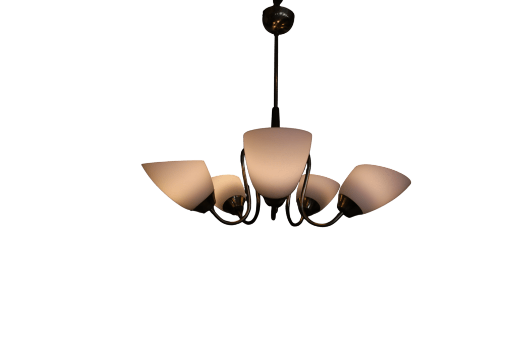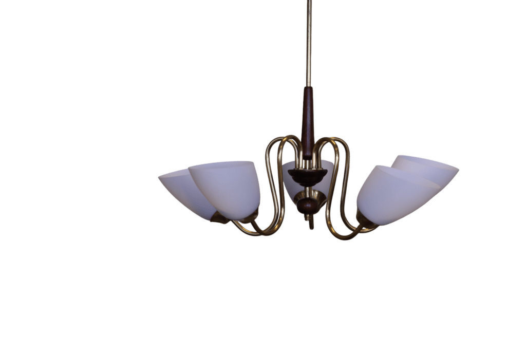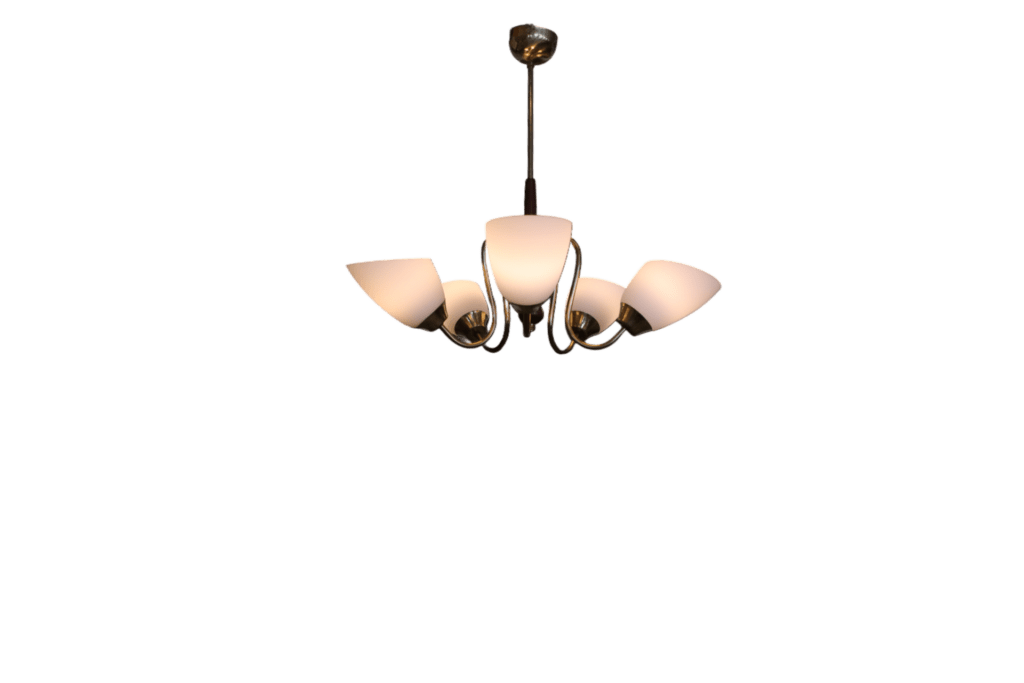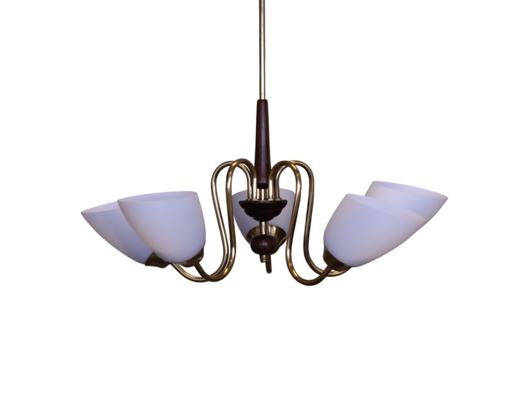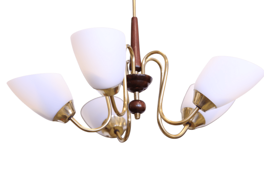 En underbar graciös taklampa som är från skiftet 50/60-tal med alla de kvalitéer som var en självklarhet.