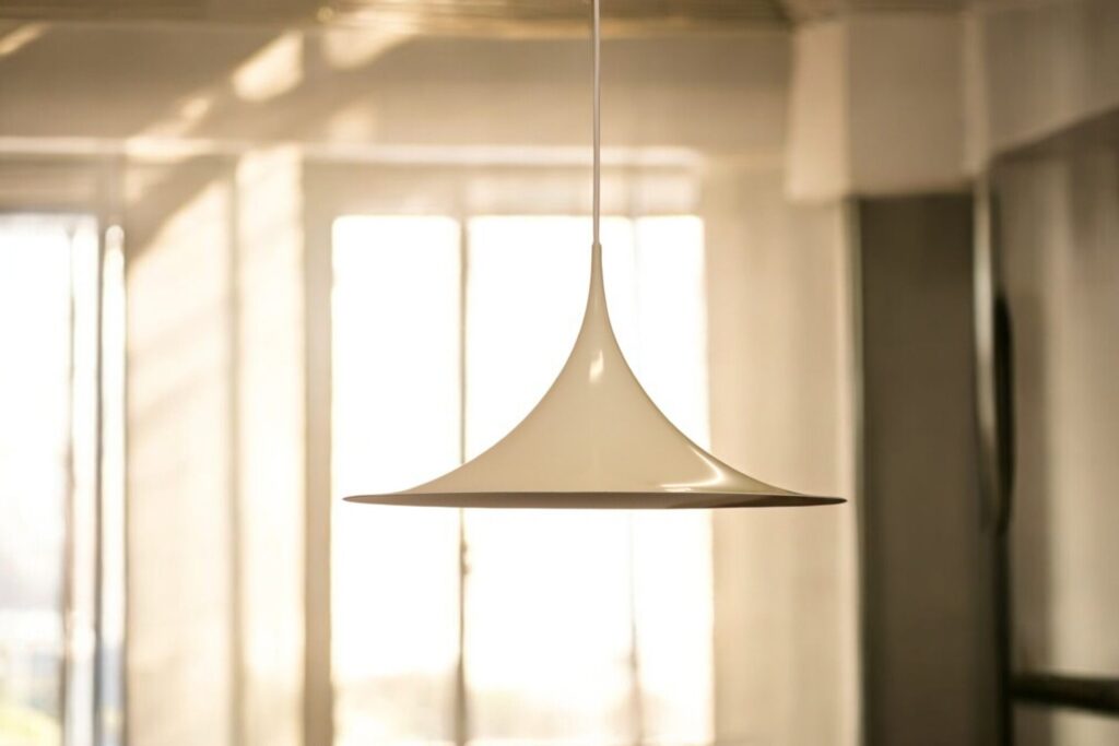 En vit klassisk semipendel formgiven av Claus Bonderup & Torsten Thorup för Gubi i Danmark
