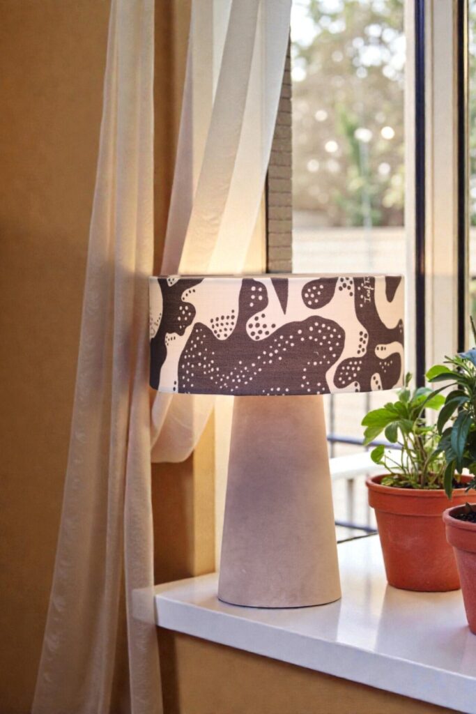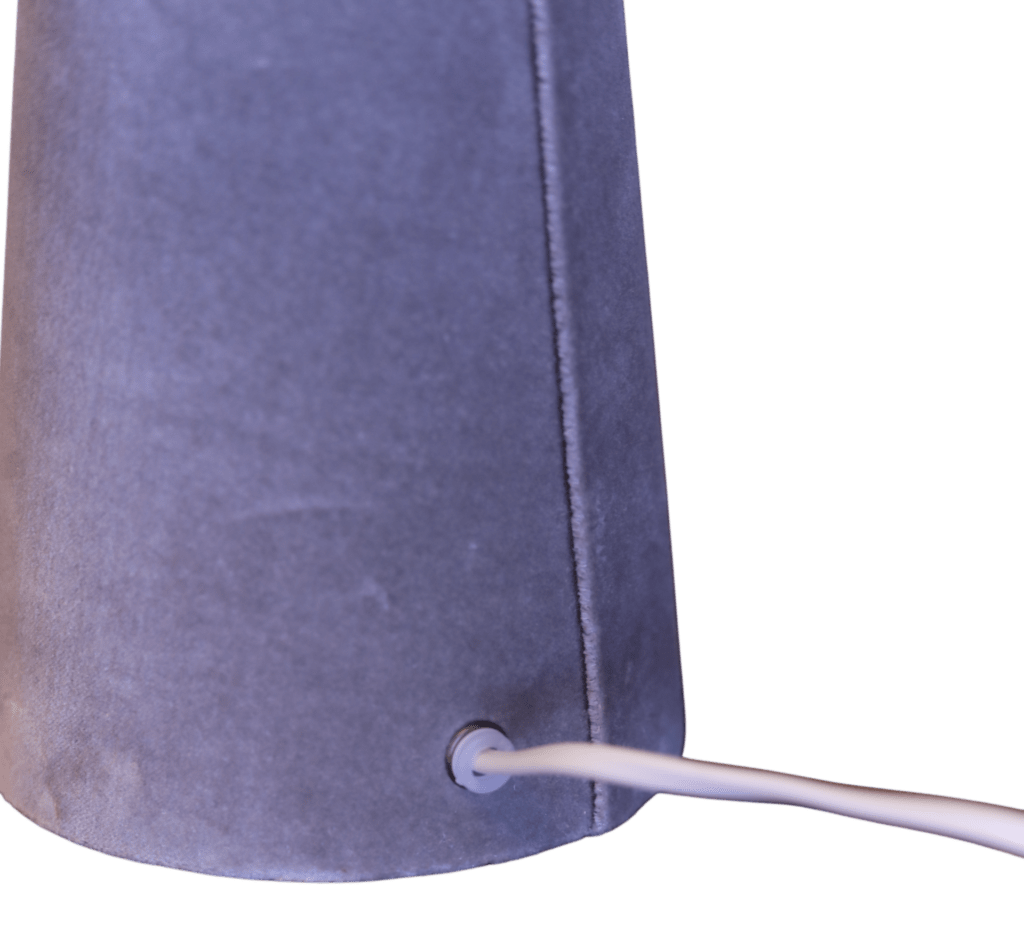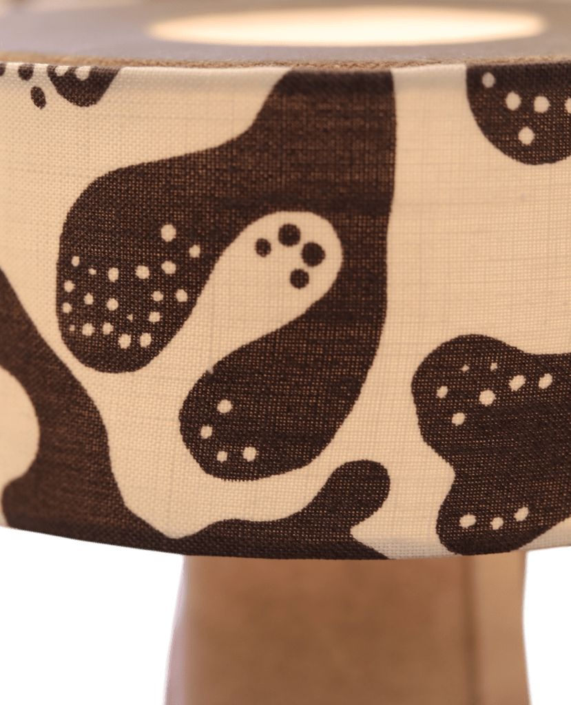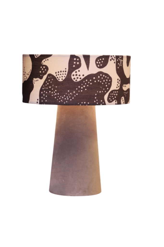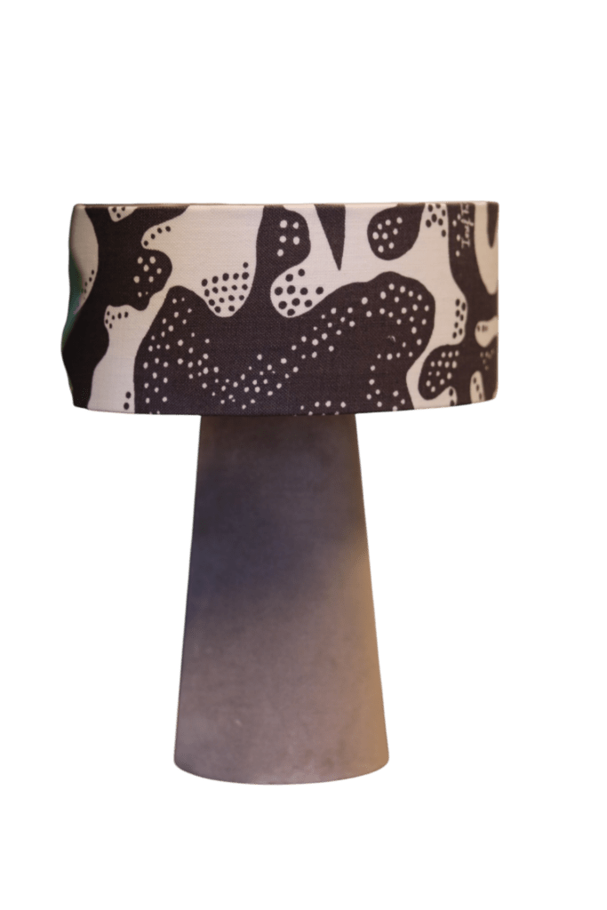 Lampan sprider ett varmt och behagligt ljus och blir en stilfull detalj i fönstret, på ett sidobord eller i sovrummet. Kombinationen av sammetens mjuka struktur och linnetygets lekfulla mönster ger lampan en unik balans mellan elegans och personlighet.