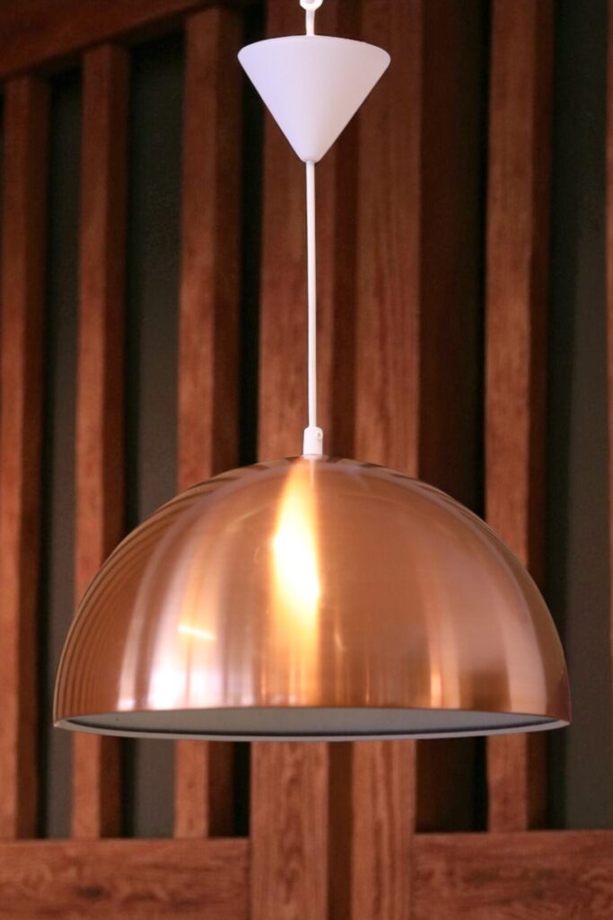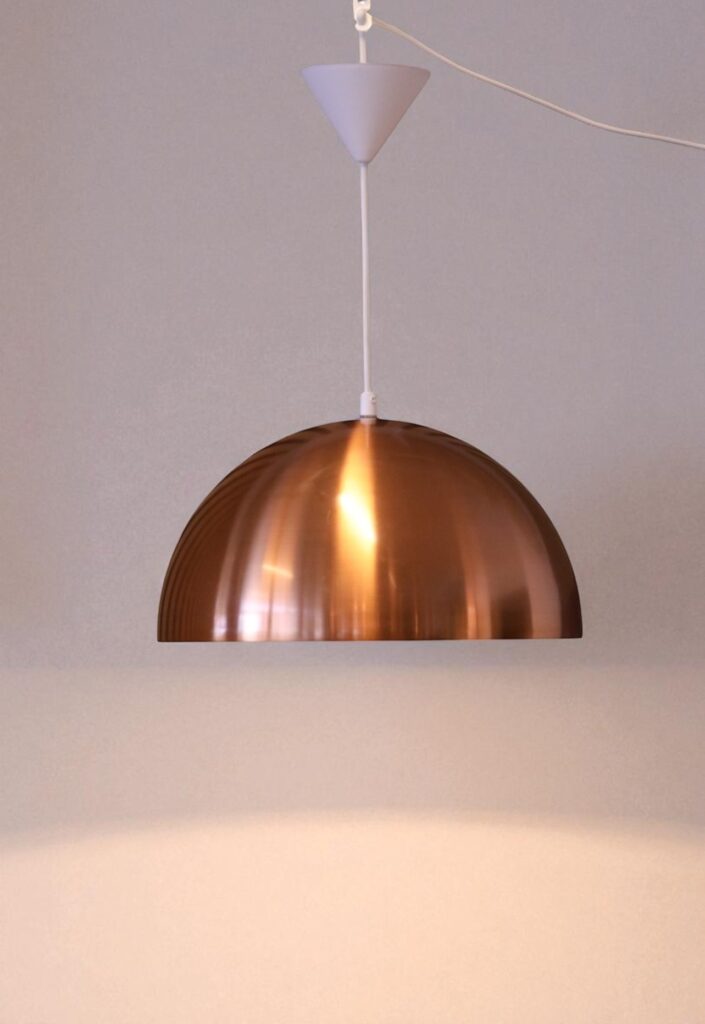 Lampa i koppar med vitlackerad insida för bra reflektion av ljuset.