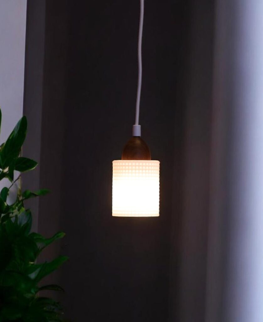 Magisk fönsterlampa med vitt våfflat glas samt en rundad knopp i teak, vilket ger en elegant och stilfull känsla till ditt hem. Lampan blir så mycket mer än bara en ljuskälla, en inredningsdetalj som verkligen förhöjer atmosfären i rummet.