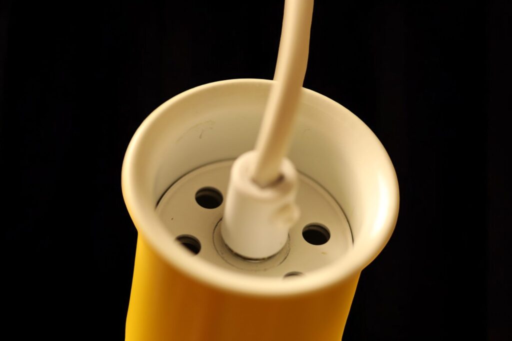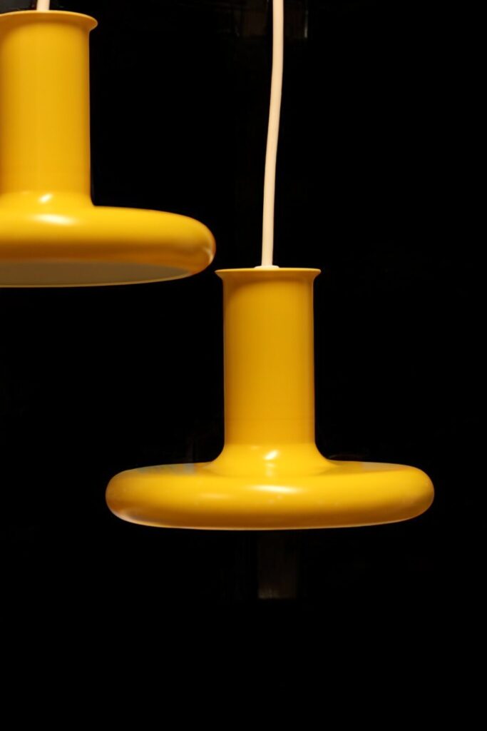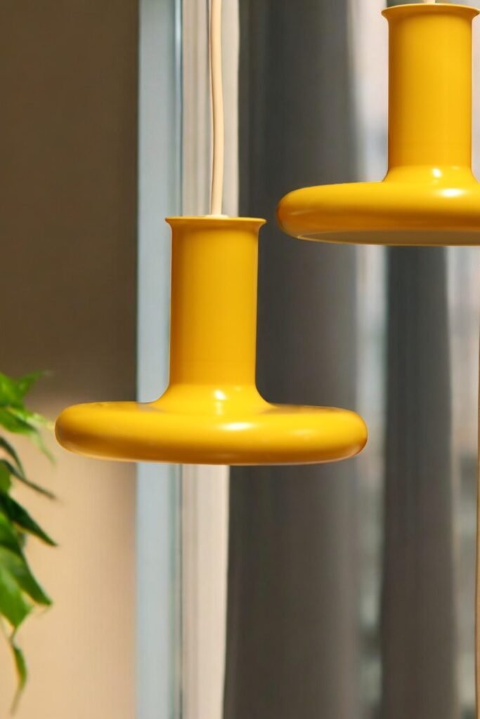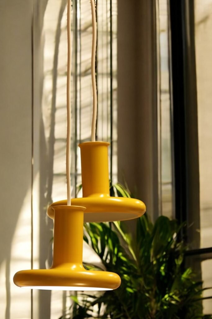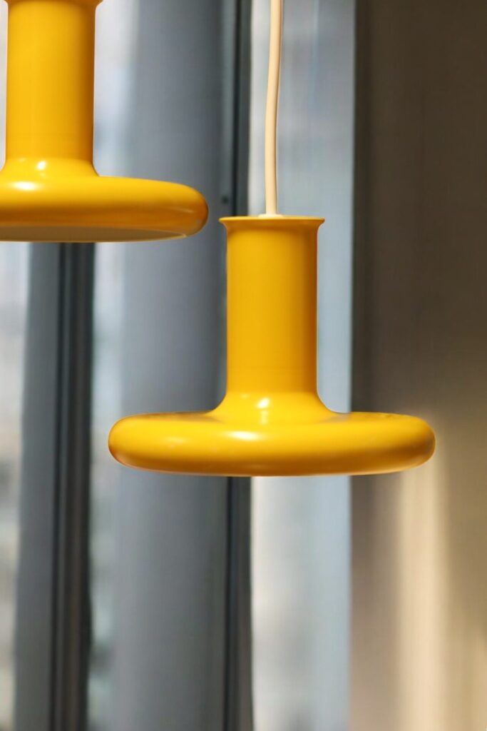 Lampan Optima, formgiven av Hans Due är en lekfull och samtidigt stilren pendel som kombinerar dansk funktionalitet med en härligt varm färgskala. Den solgula metallskärmen ger lampan ett uttryck som både känns tidstypiskt och modernt, en perfekt färgklick i allt från kök och matplats till vardagsrum eller arbetsrum.