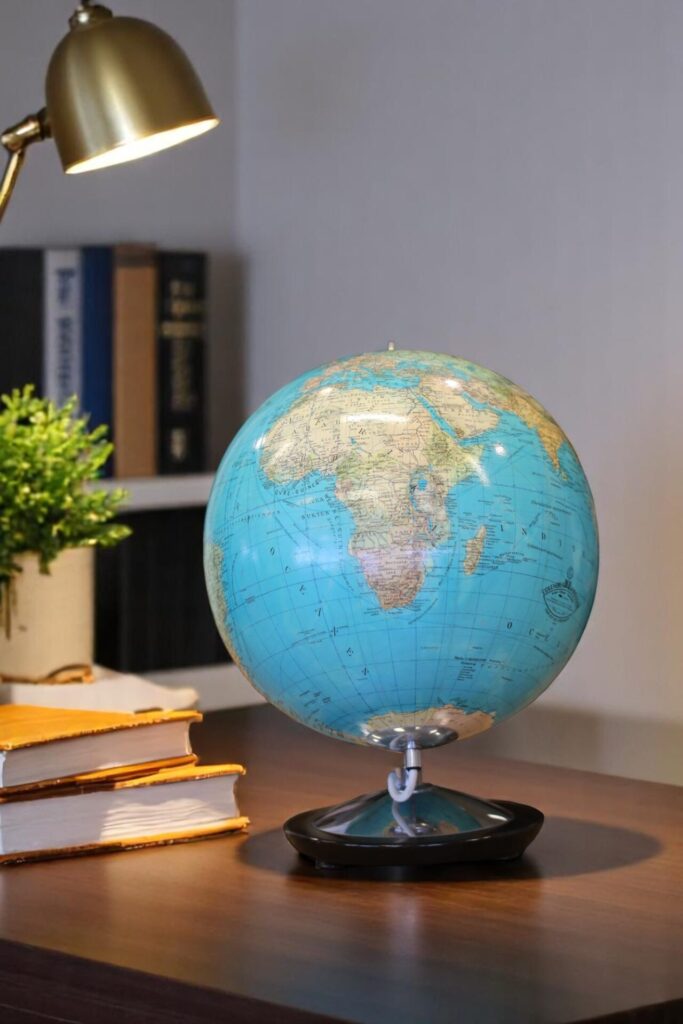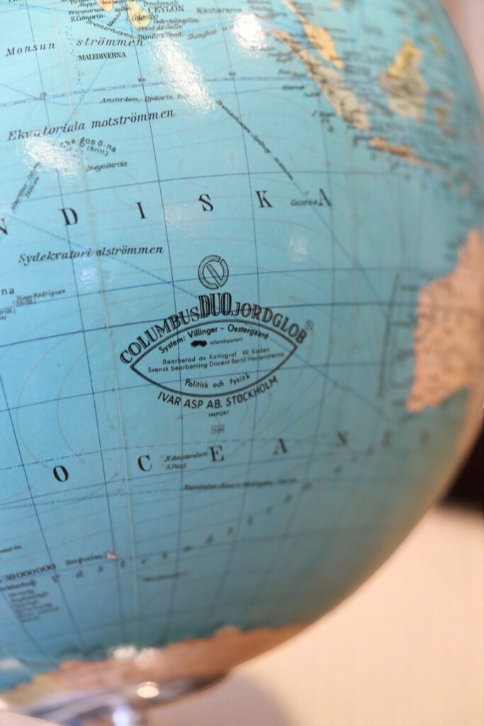 Troligen den mest vackra lampan man kan tänka sig och tack vare att globen är i glas finns inga vågräta skarvar på kartan!