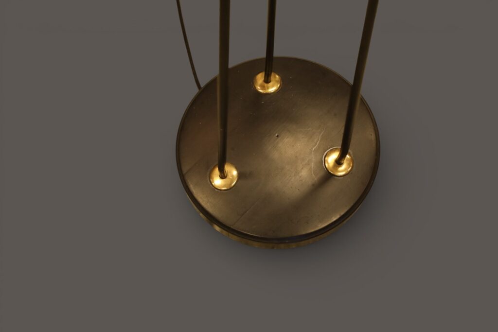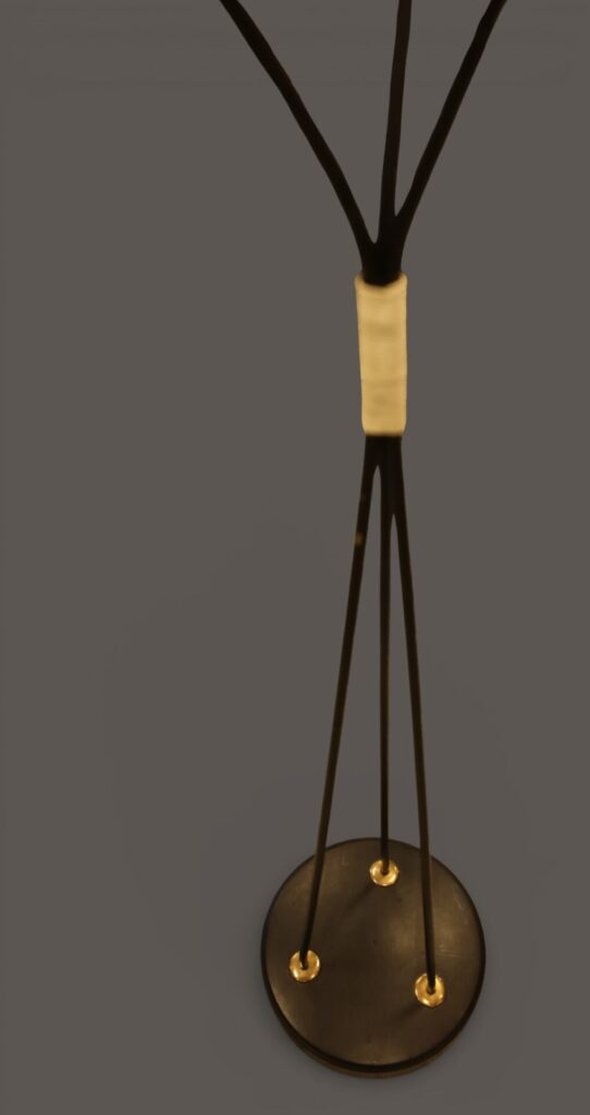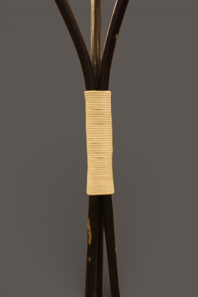 Underbar och mycket ovanlig golvlampa från 1950-talet i svart metall, mässing samt lindade plastband.