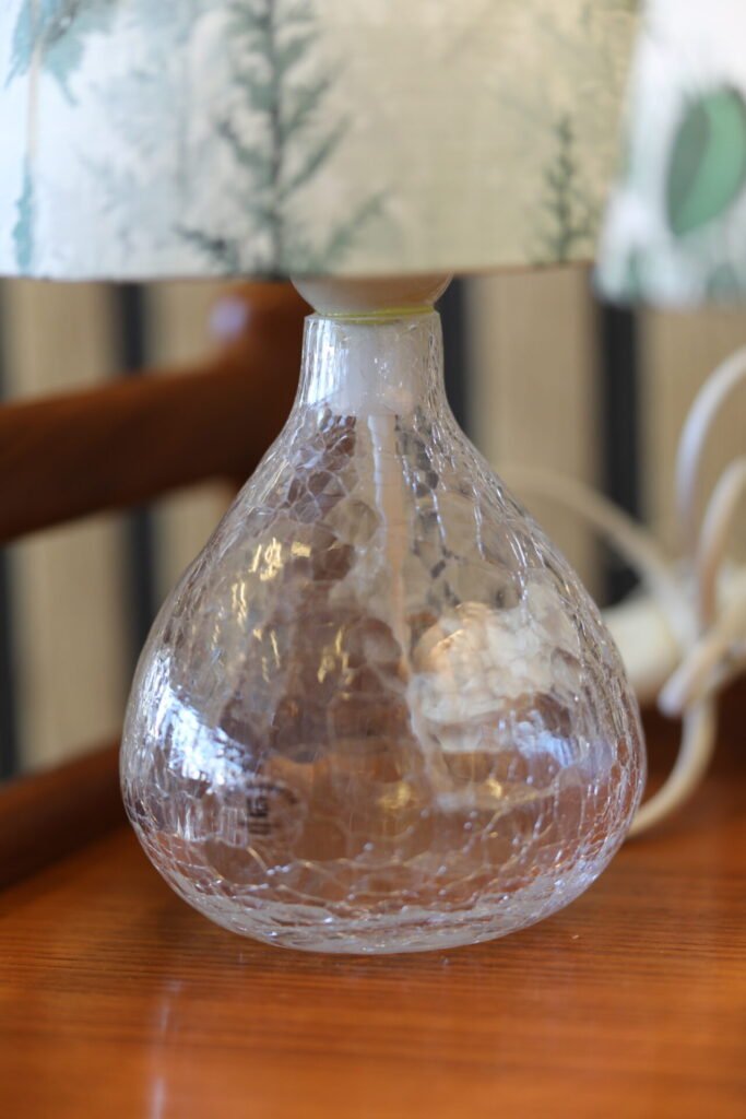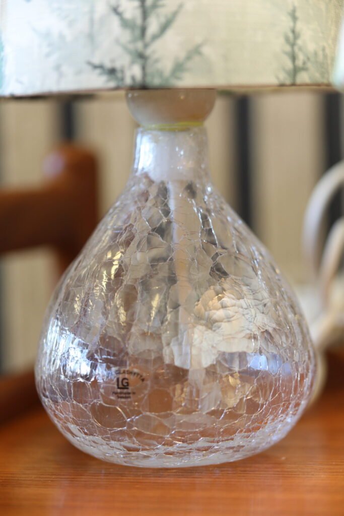 Stilren lampfot i munblåst krackelerat klart glas från Laxå Glashytta.