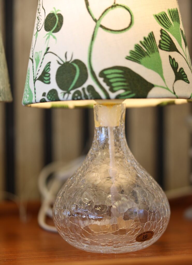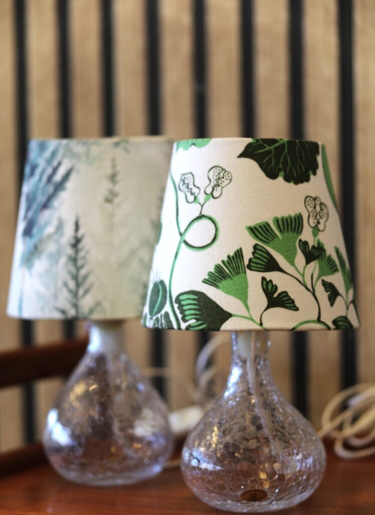 Det finns en lampfot kvar och vi har även många olika lampskärmar som passar fint till lampfoten.