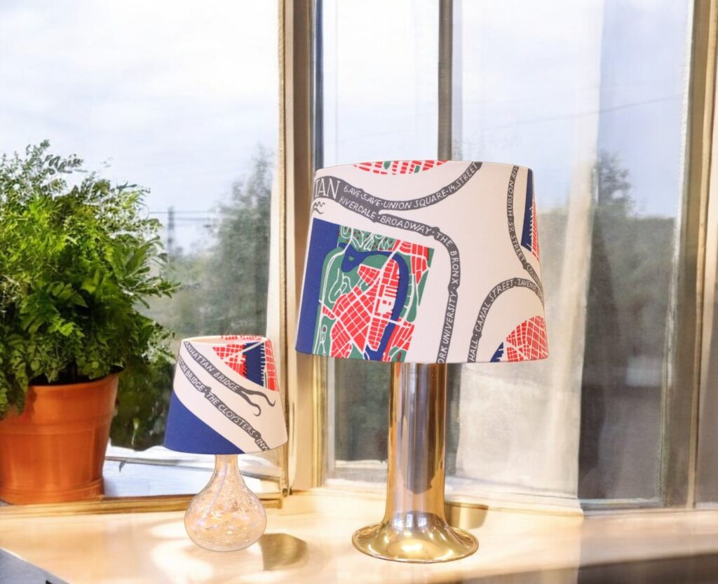 ”Under åren 1941-1946 bor och arbetar Josef Frank i New York. Han finner stadsplanen intressant i sin förenkling och skapar därför mönstret Manhattan, som visar öns karta. I den nedre rektangeln syns nordspetsen av Manhattan med Washington Bridge, Cloisters och Inwood Hill Park. Det var här Josef Frank bodde tillsammans med sin svenska fru Anna, inte långt från Broadways nordligaste del.”