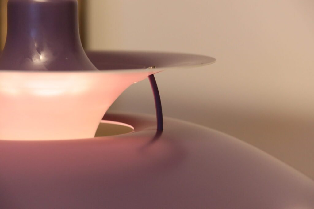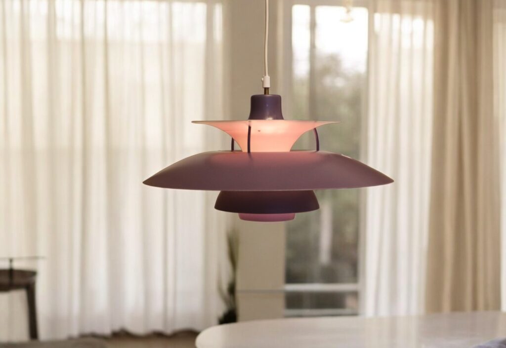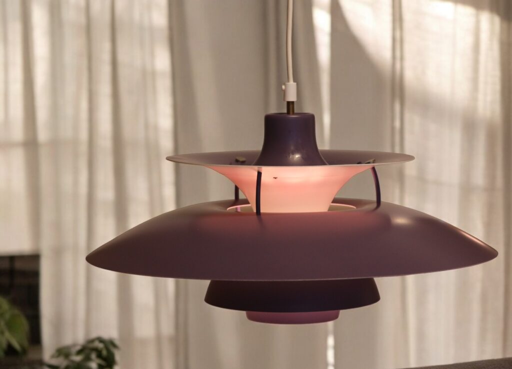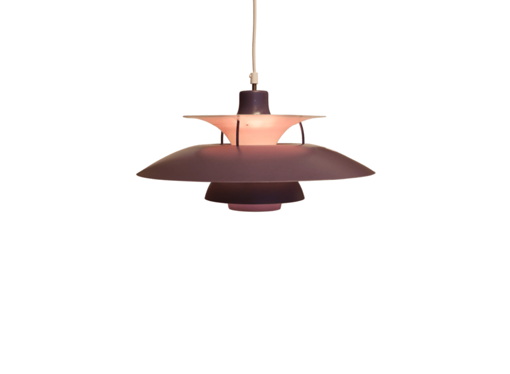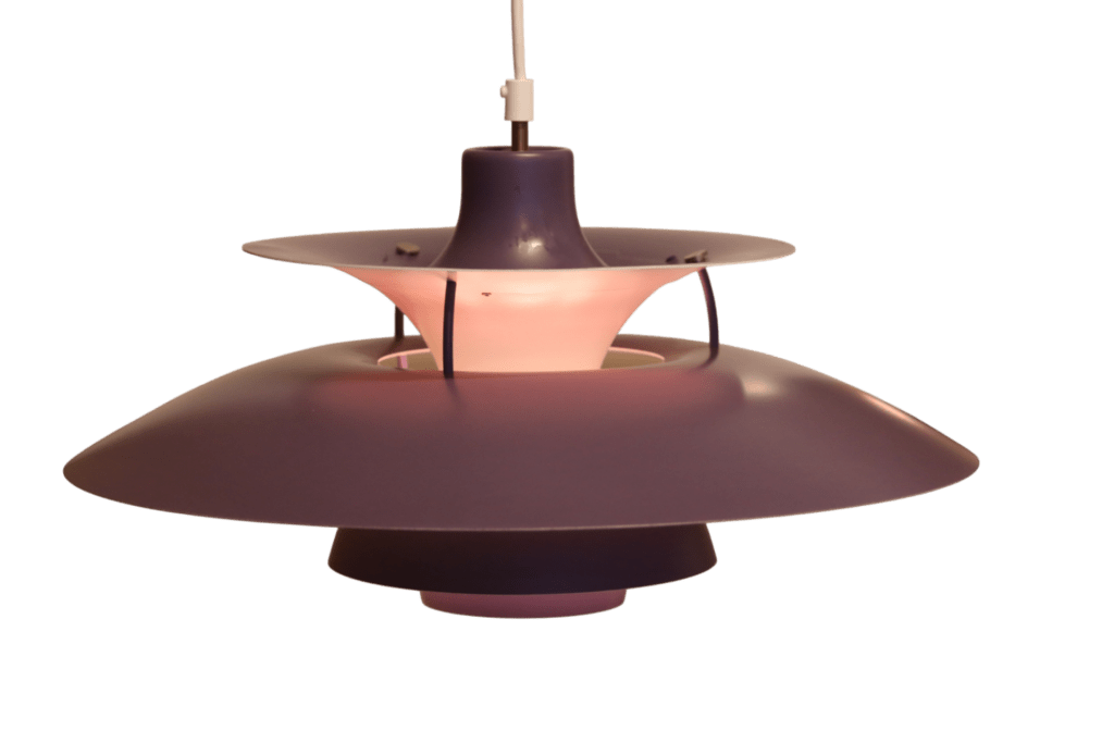 Den klassiska och tidlösa taklampan PH5-pendeln i en mjukt lila upplaga, är en véritable designikon som verkligen fångar essensen av elegans och funktionalitet.