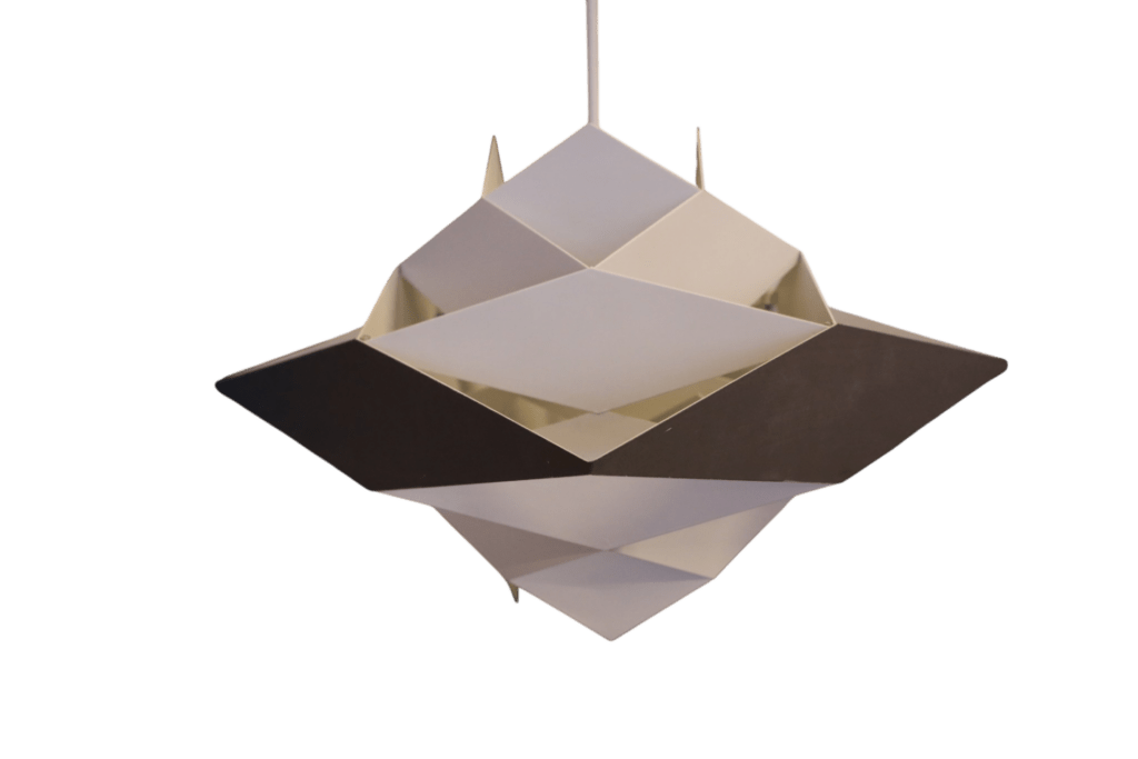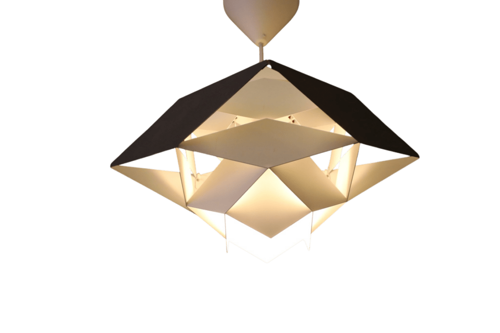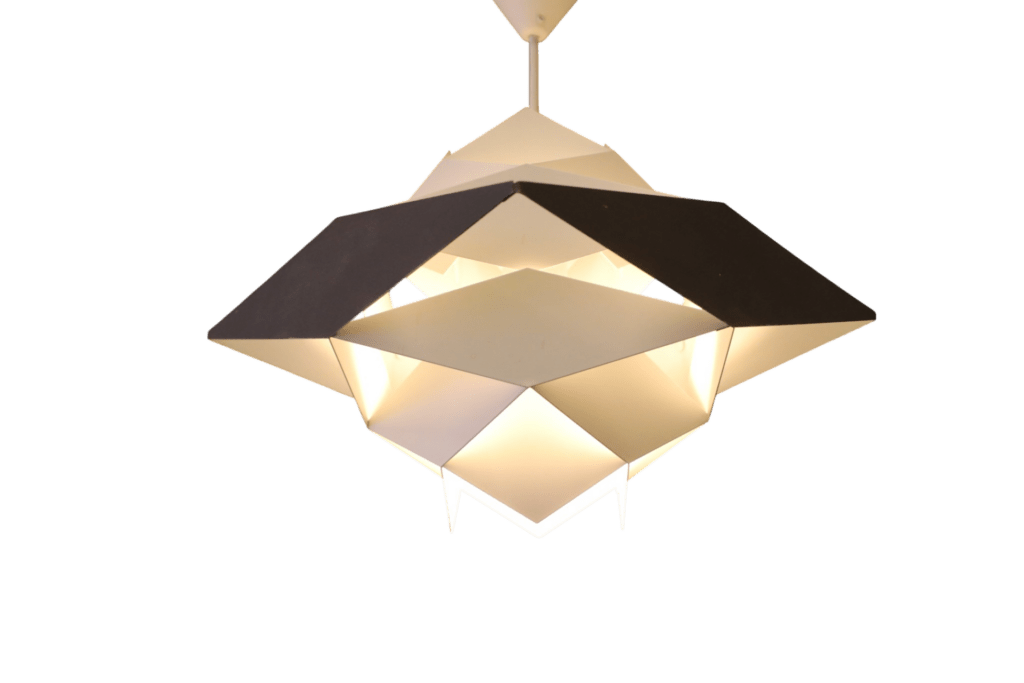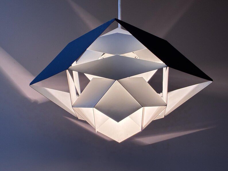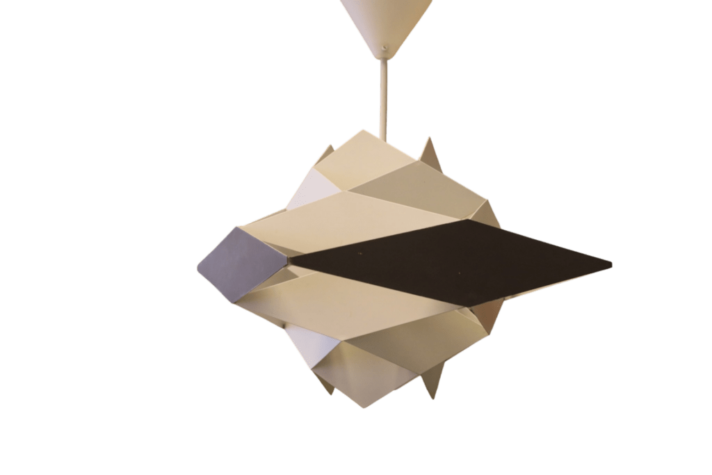 När lampan är tänd skapas en fantastisk effekt där ljuset spelar genom formen och ger mjuka, levande skuggor runt omkring. Resultatet blir ett mycket stämningsfullt ljus och skuggspel som verkligen lyfter rummet.