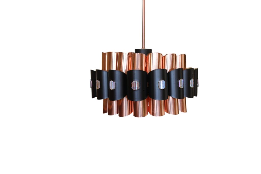 Werner Schou Danmark taklampa i koppar och svart. 40 cm ø