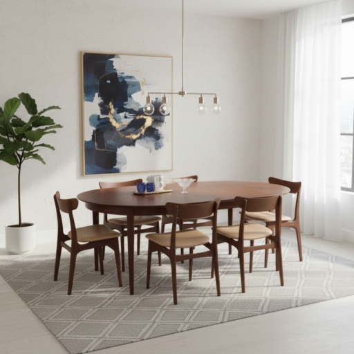 Runt bordet får man plats med 8-10 sittplatser när de båda utdragsskivorna är utdragna.