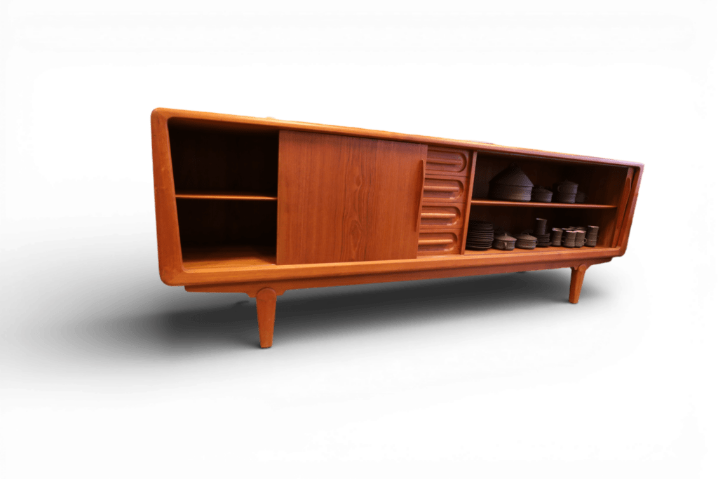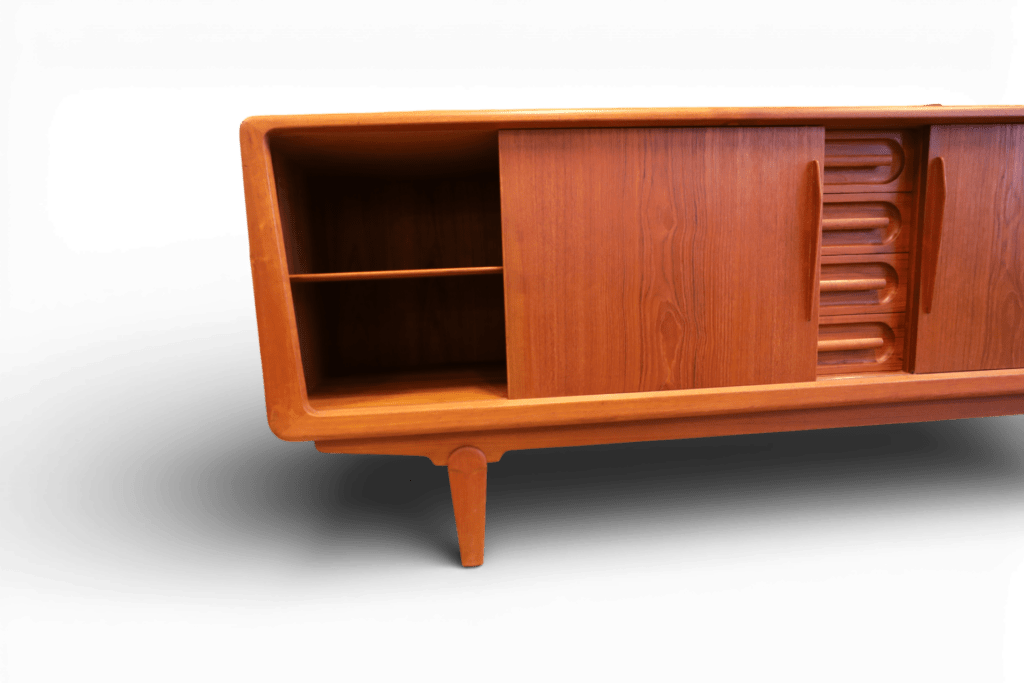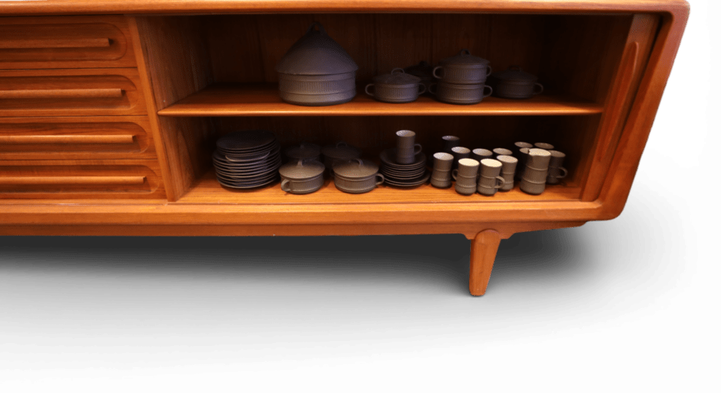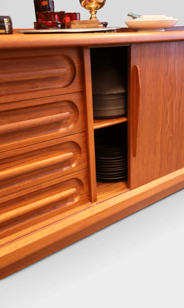 Alla detaljer och uttrycket på sideboardet skvallrar om den ypperst kvalité och hantverk Arne Vodder alltid la på sina möbler. Absolut inga genvägar användes för en enklare eller billigare lösning utan kvalité var ett självklart honnörsordet för företaget!