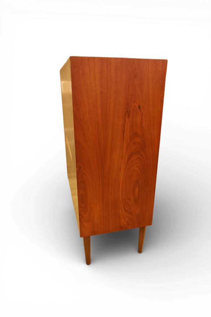 Ytorna på byrån har mycket vacker ådring och lådorna är stadiga i trä.