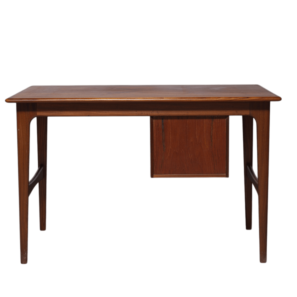Danskt nätt skrivbord i teak med mjukt formade ben som är kopplade.