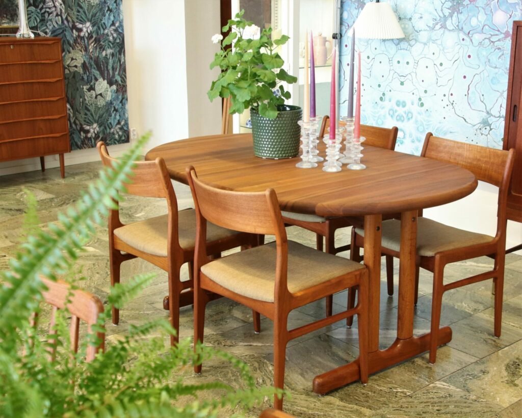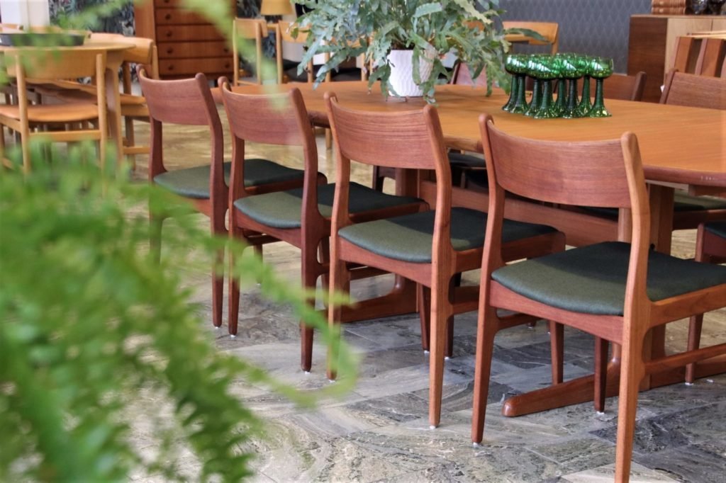 Fantastisk uppsättning danska stolar i teak av Funder Schmidt & Madsen i Odense, Danmark.