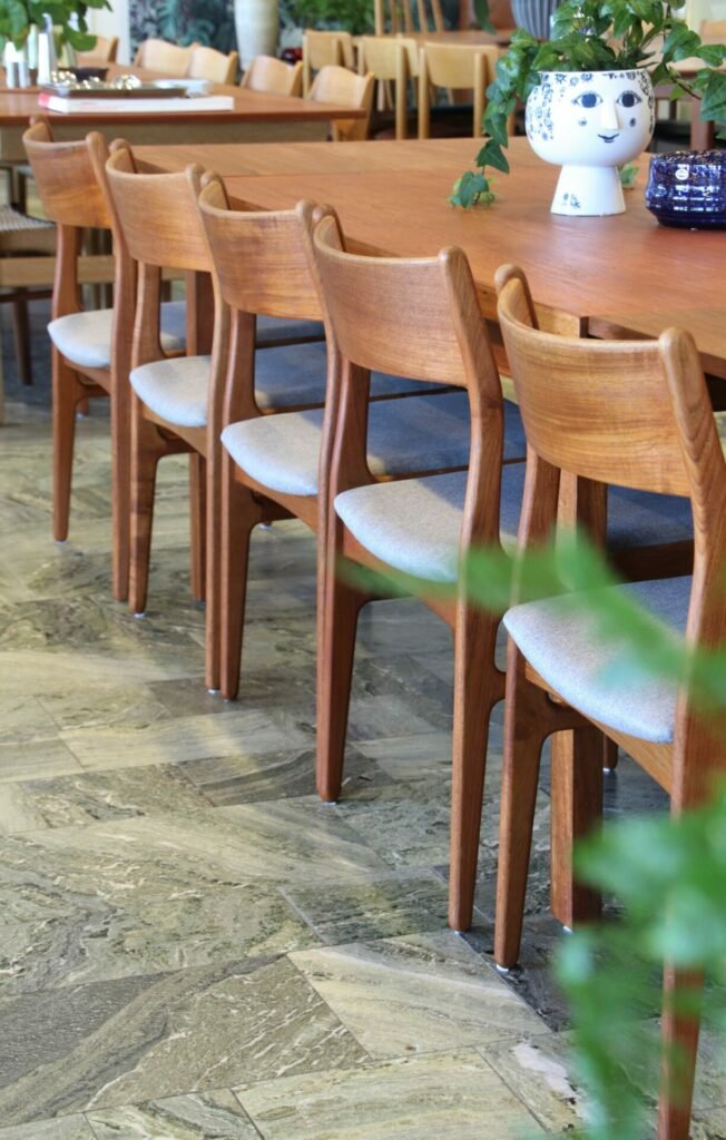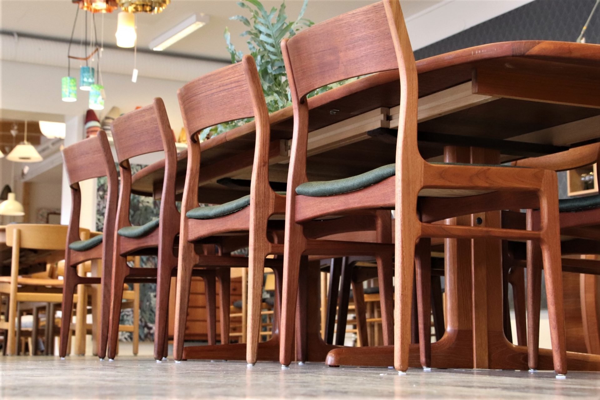 Fantastisk uppsättning danska stolar i teak av Funder Schmidt & Madsen i Odense, Danmark.