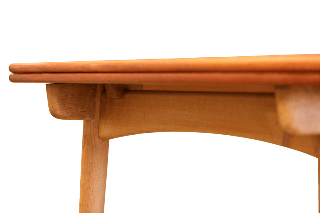 Bordet är inte bara funktionellt, utan också en estetisk skönhet som kompletterar alla typer av inredningar. Bordsskivan, som är tillverkad i teak, medan benen och benställningen i ek. Det ger bordet det typiskt danska uttrycket, vilket är en kännetecken för Wegners design, då han oftast använde en kombination av teak och ek i samma möbel. Kombinationen av träslag ger möbeln en fint kontrast och en harmonisk balans. Wegner är även känd för sina minimalistiska samt innovativa designklassiker, som har blivit tidlösa ikoner inom möbeldesign. Han är en stor mästare inom sitt fält och anses av många som den störste av de danska designerna, vars influenser och stil fortfarande påverkar samtida formgivning idag.