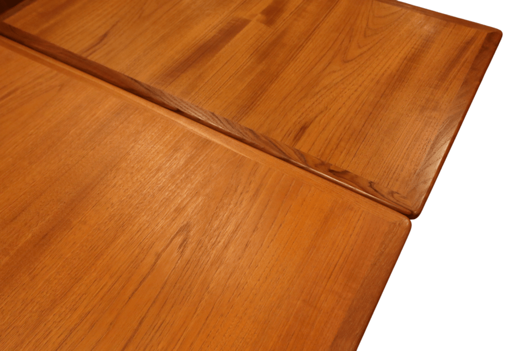 Matbordet har en mjukt rundad sarg samt runda snedställda ben. Till bordet finns även två utdragsskivor som är placerade under bordet och som alltid finns till hands när de ska används. Använd dem en och en eller båda ihop, behovet bestämmer!