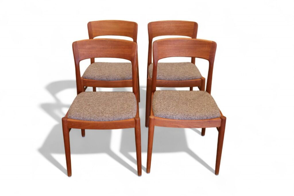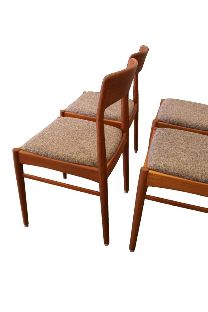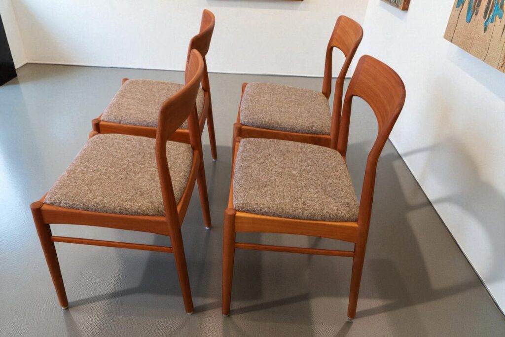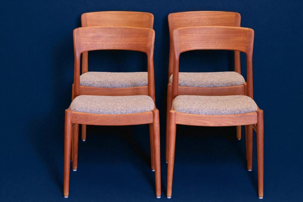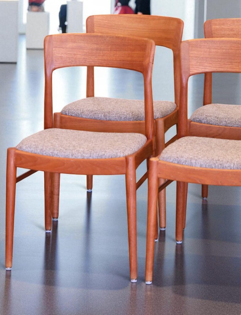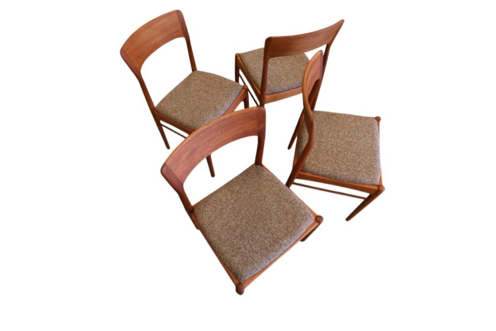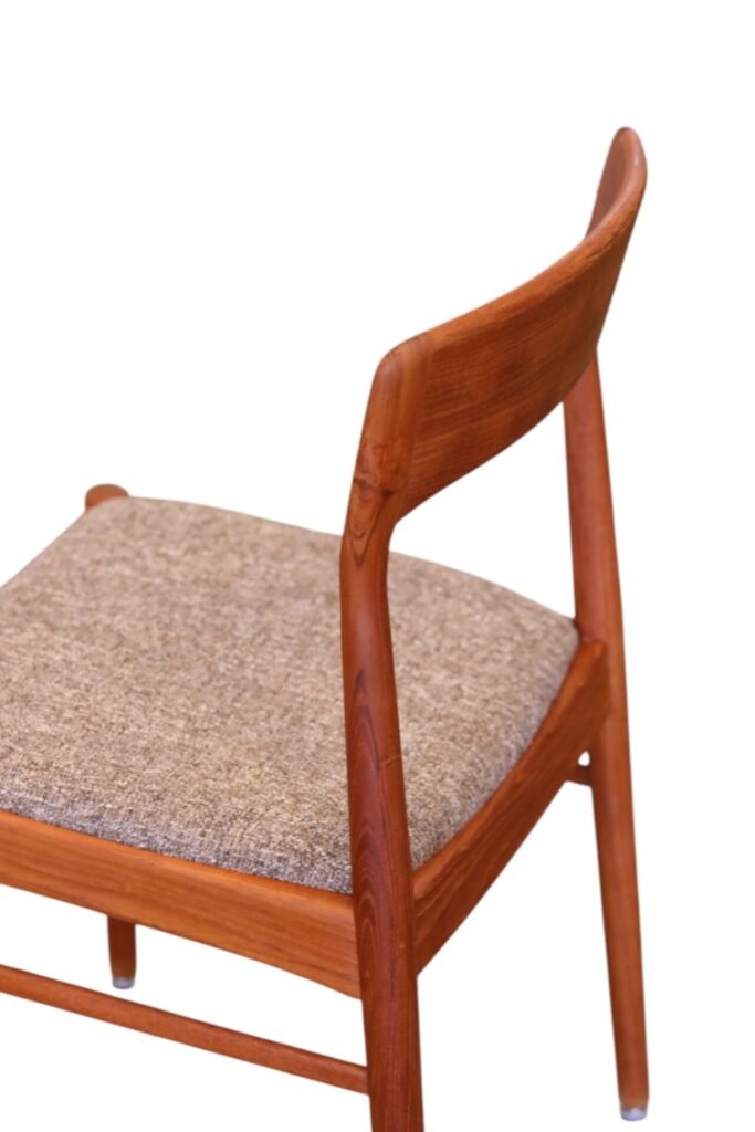 En stilren stol i gyllenbrun teak formgiven av Henning för KS Møbler i Danmark.