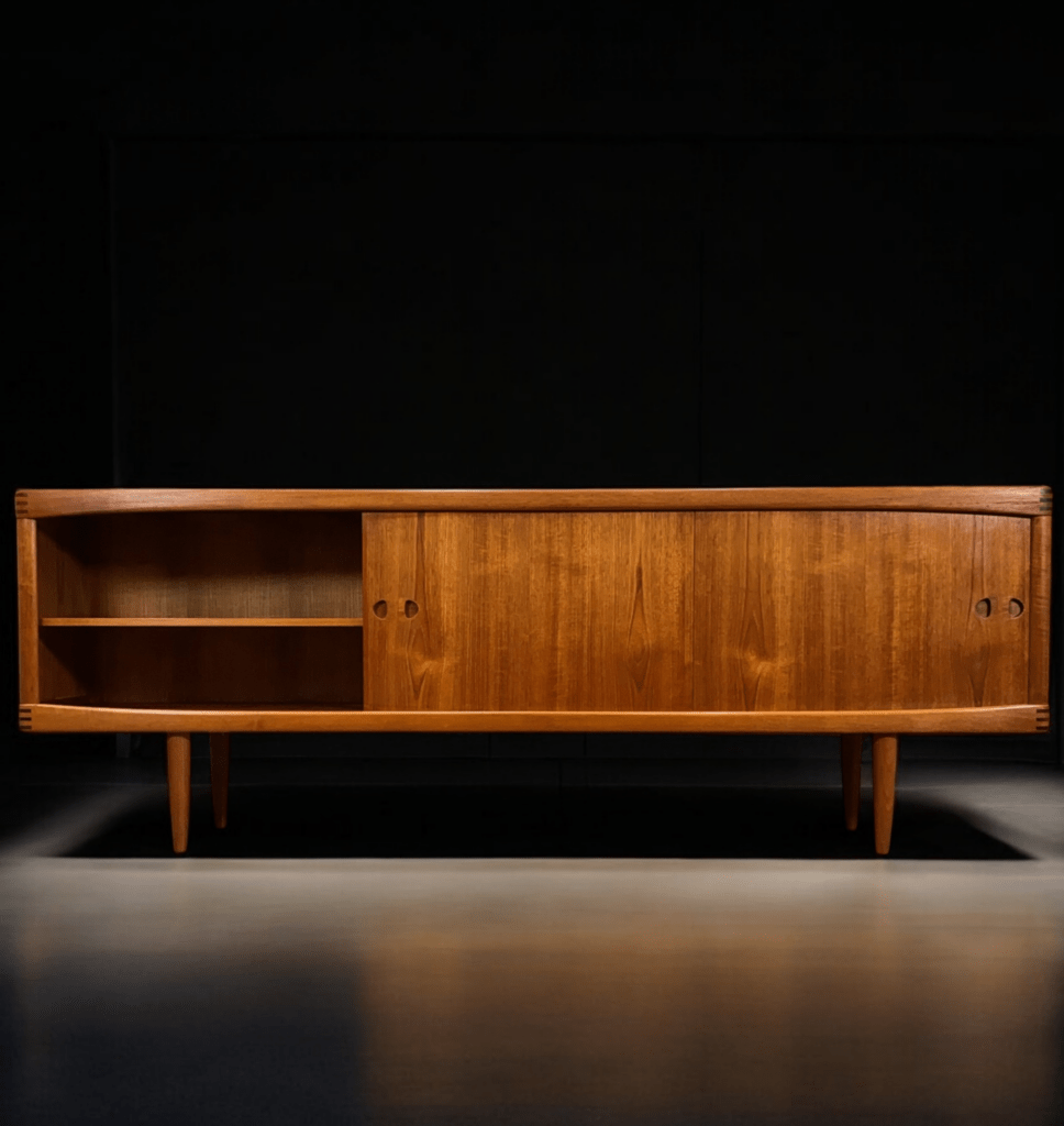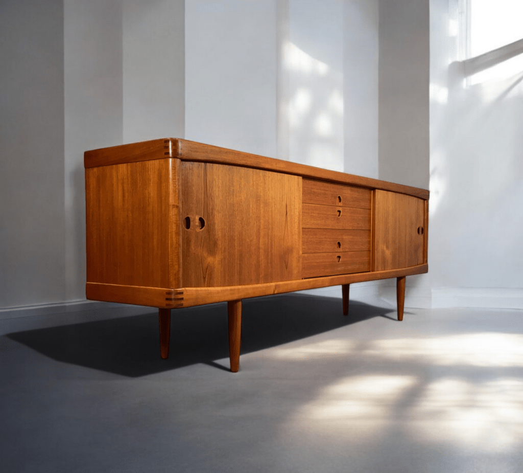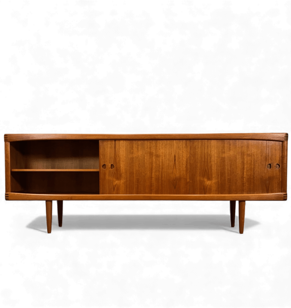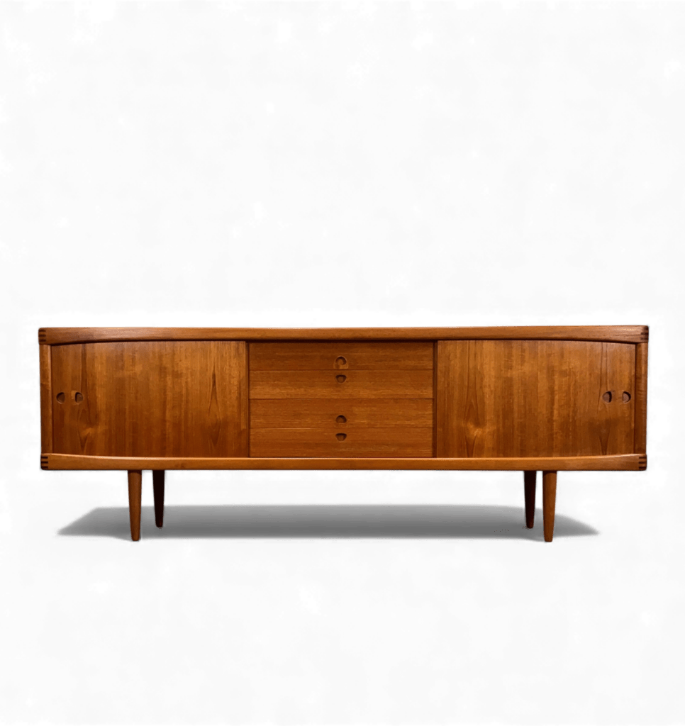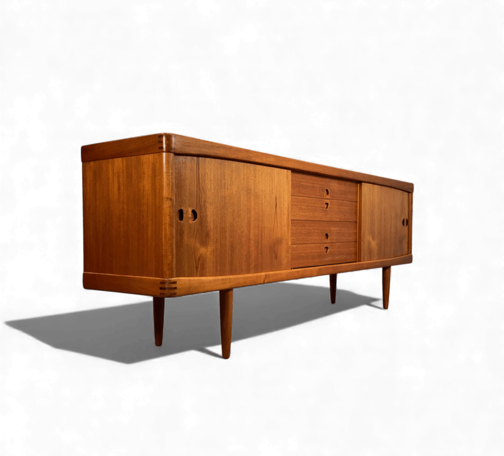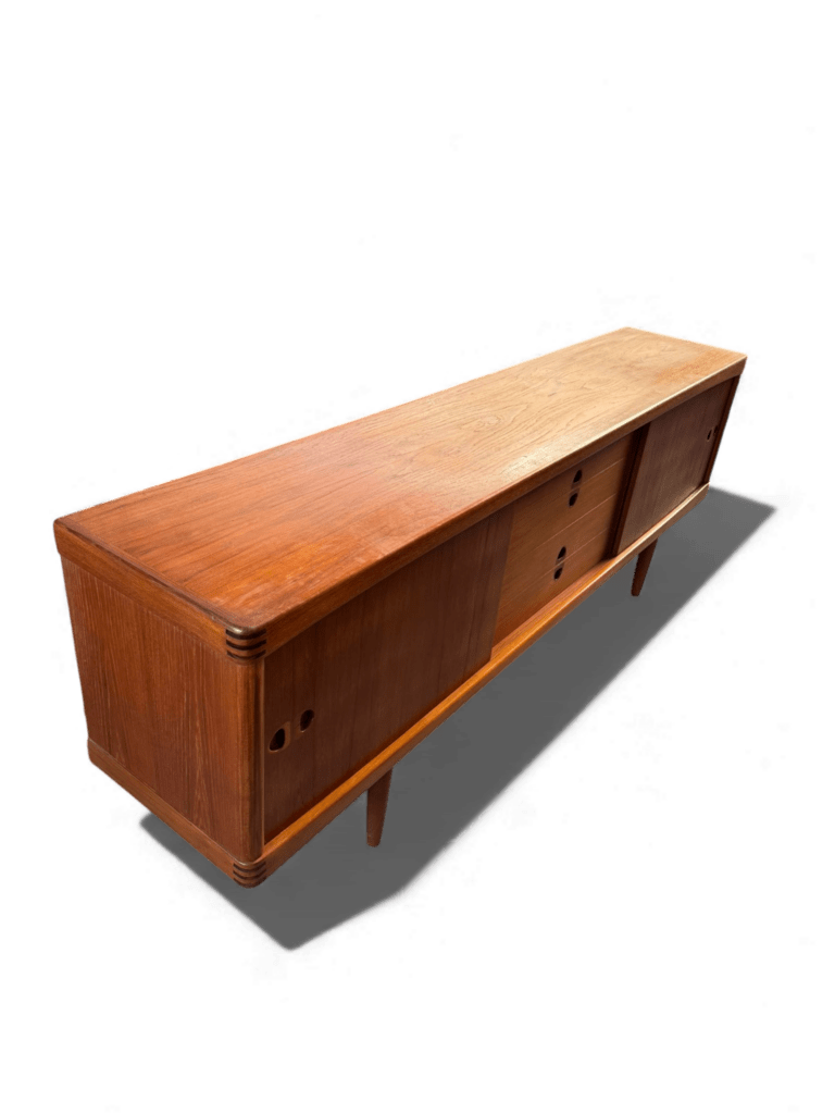 Ett danskt sideboard med långa och eleganta linjer, noggrant designat av den välrenommerade formgivaren Henry W. Klein för det prestigefyllda företaget Bramin Møbler i Danmark.