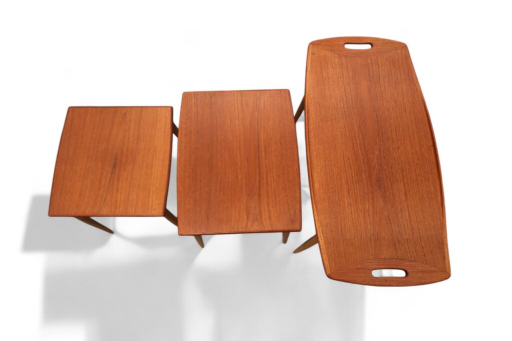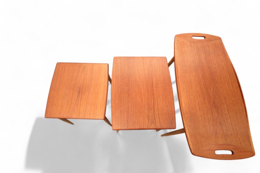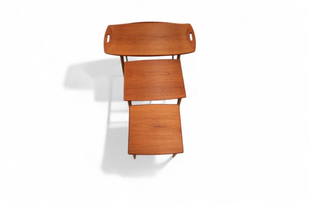 När borden är hopskjutna sitter de ihop med gejdrar under bordsskivorna, vilket underlättar vid förflyttning av dem och säkerställer att de alltid håller sig på plats. Det gör det enkelt att hantera och förvara dem när inte alla tre bord används, samtidigt som de erbjuder både funktionalitet och stil i ditt hem. Setet med bord tar alltså endast den golvytan som det större bordet kräver när de är hopskjutna och spar golvyta effektivt. Samtidigt är det snabbt och enkelt att ställa fram de två undre borden vid behov.