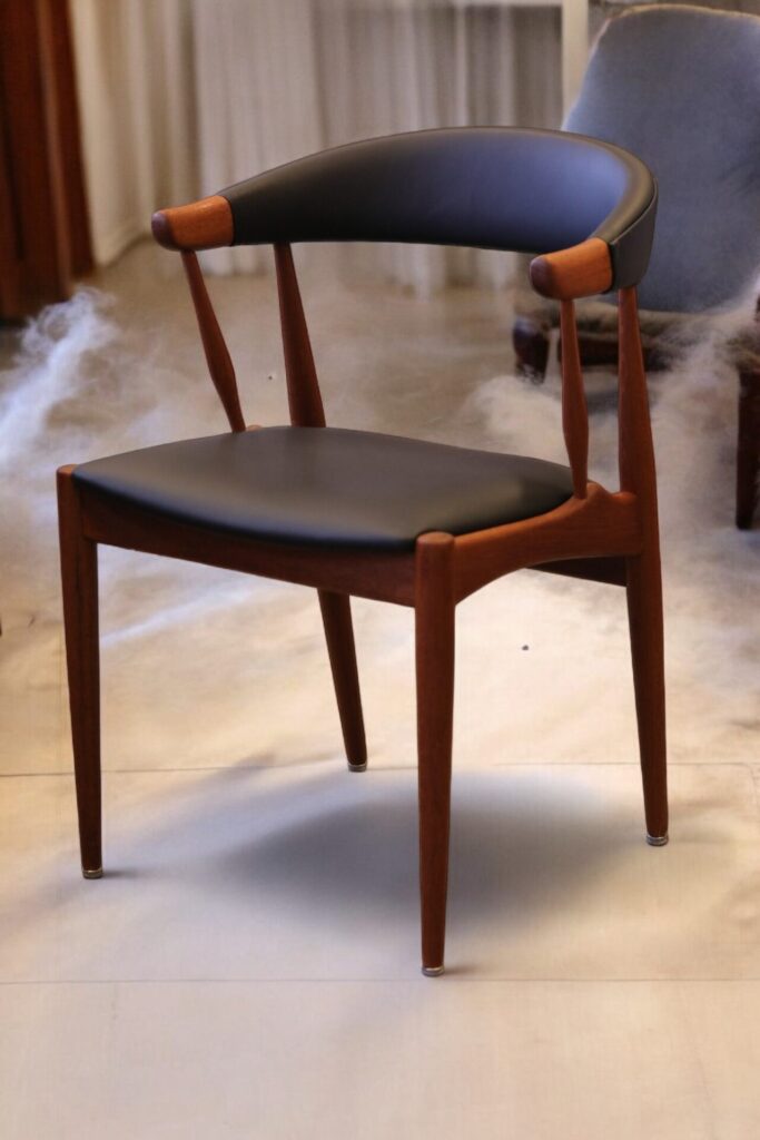 Formgivaren är Johannes Andersen, en känd och respekterad designer, och stolen är även kallad Cow horn chair tack vare den unika och karakteristiska formgivning som liknar just ett kohorn. En stol som har fått stor uppmärksamhet inom möbeldesignvärlden för sin eleganta och funktionella stil, som kombinerar både estetik och komfort på ett inspirerande sätt.