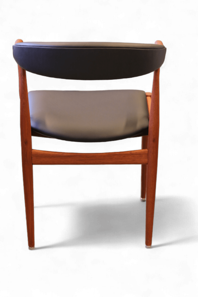 I mycket fint skick med ytterst få bruksspår. Ny kallskum samt ny klädsel både på rygg och sits i svart mjukt skinn utförd av professionell tapetsör.
