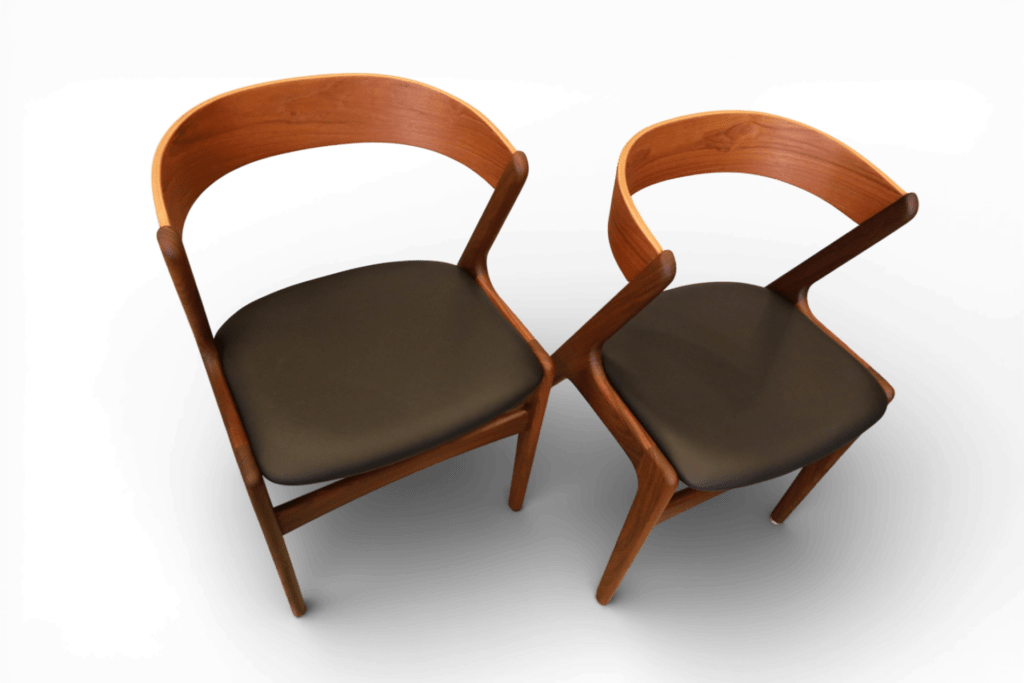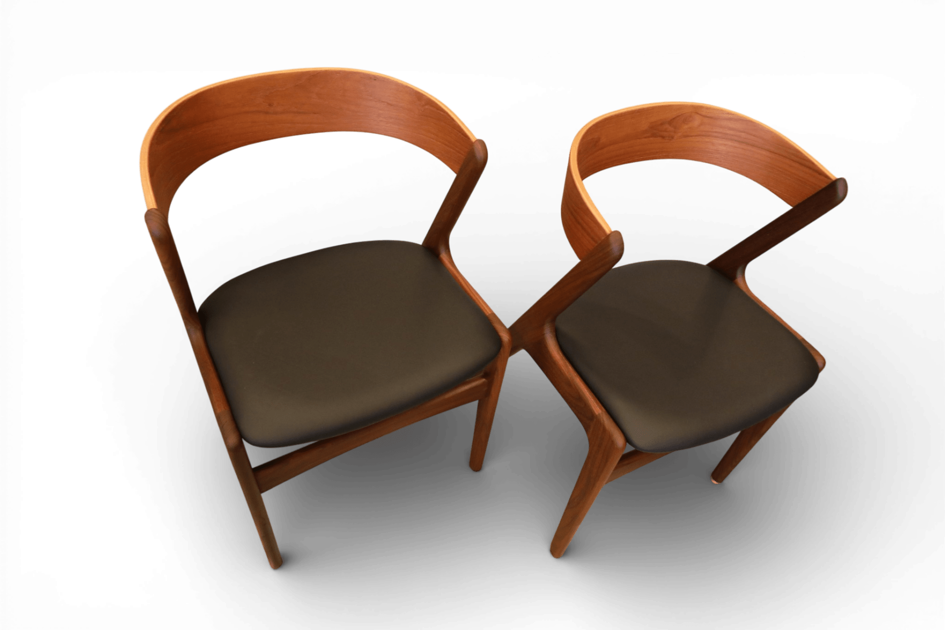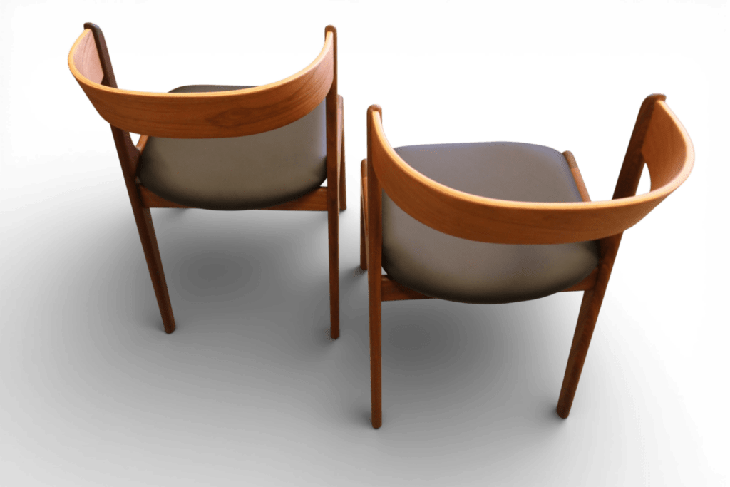 Stolar i modellen T21 som även kallas Fire Chair är formgivna av Kai Kristiansen i Danmark och i den mycket ovanliga upplagan som inte är klädd på ryggen!