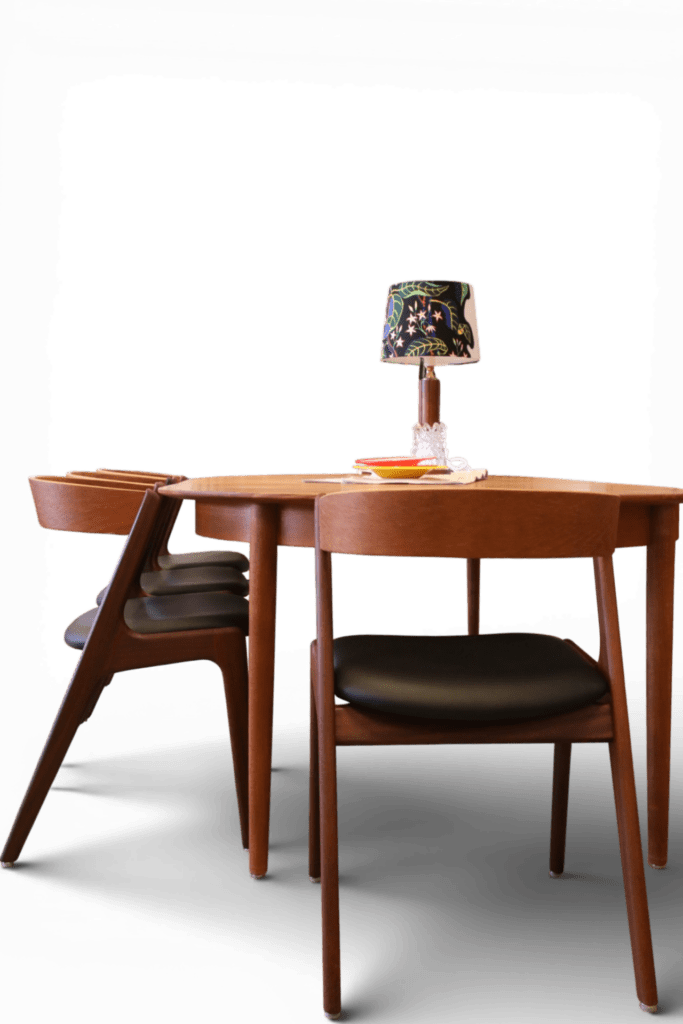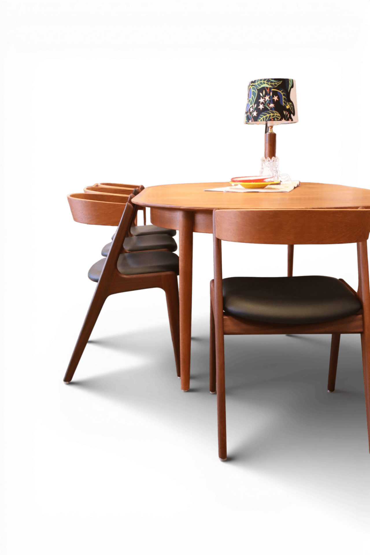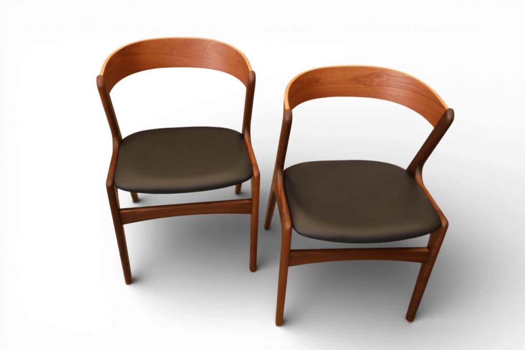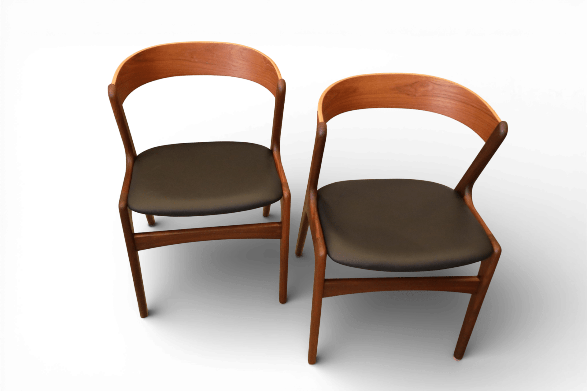 Stolar i modellen T21 som även kallas Fire Chair är formgivna av Kai Kristiansen i Danmark och i den mycket ovanliga upplagan som inte är klädd på ryggen!