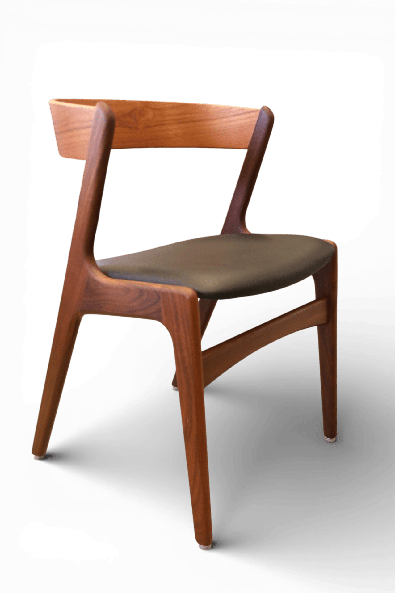 Stolen är i mörk teak och modellen är en nätt karmstol med mycket hög sittkomfort som ändå inte tar så stor plats som många andra karmstolar. Modellen är formgiven redan på mitten av 1950-talet och som de allra flesta av Kristiansens stolar är de mycket eftertraktade och ovanliga!
