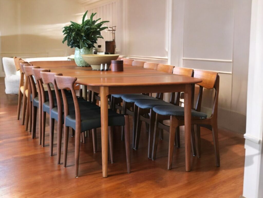 Bordet fungerar utmärkt oavsett om det är för den lilla frukosten med familjen eller den stora släktmiddagen som kan rymma mellan 14 och 16 personer! Det fantastiska bordet är utformat för att möta behoven hos olika sällskap, vilket gör det till en perfekt lösning för både vardagsliv och festliga tillfällen. Dessutom, med det generösa djupet på bordet, förenklar det verkligen dukningen och gör det betydligt enklare att hantera större sällskap, vilket gör det till ett centralt inslag i varje måltid och samling.
