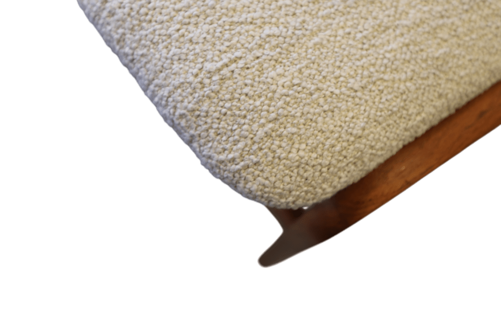I absolut toppskick med ny stoppning och klädsel i bouclé, tyg Barnum i färgen Linen.