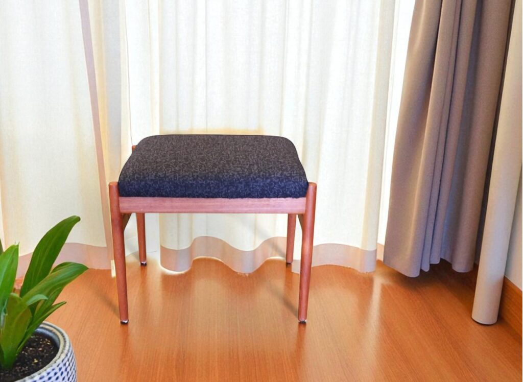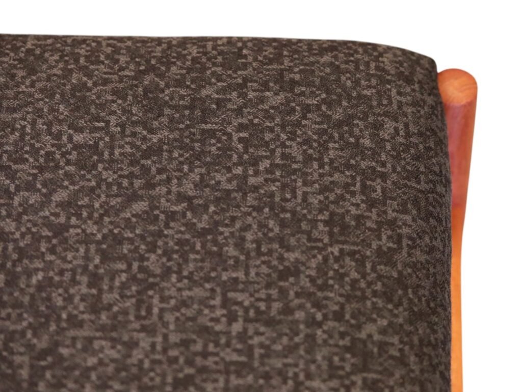Sitsen är klädd i ett stilrent och högkvalitativt svartgrått ulltyg från Kvadrat. Tyget gör pallen enkel att kombinera i de flesta miljöer och ger en inbjudande atmosfär som kompletterar inredningen i många moderna hem.
