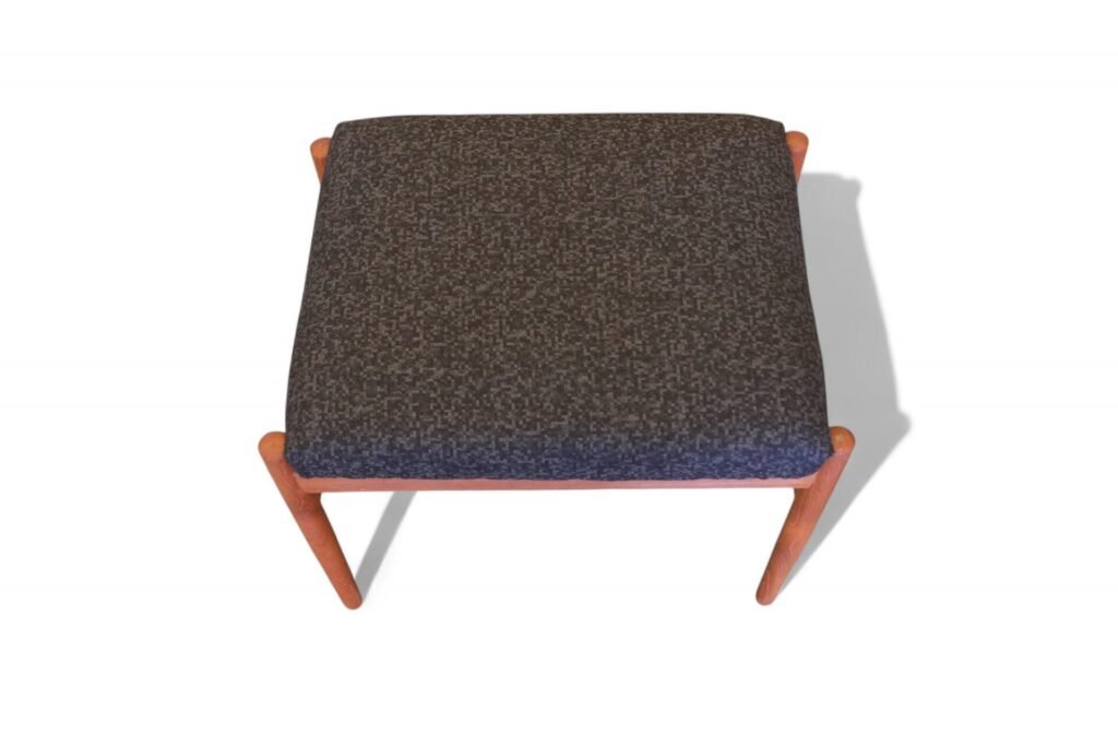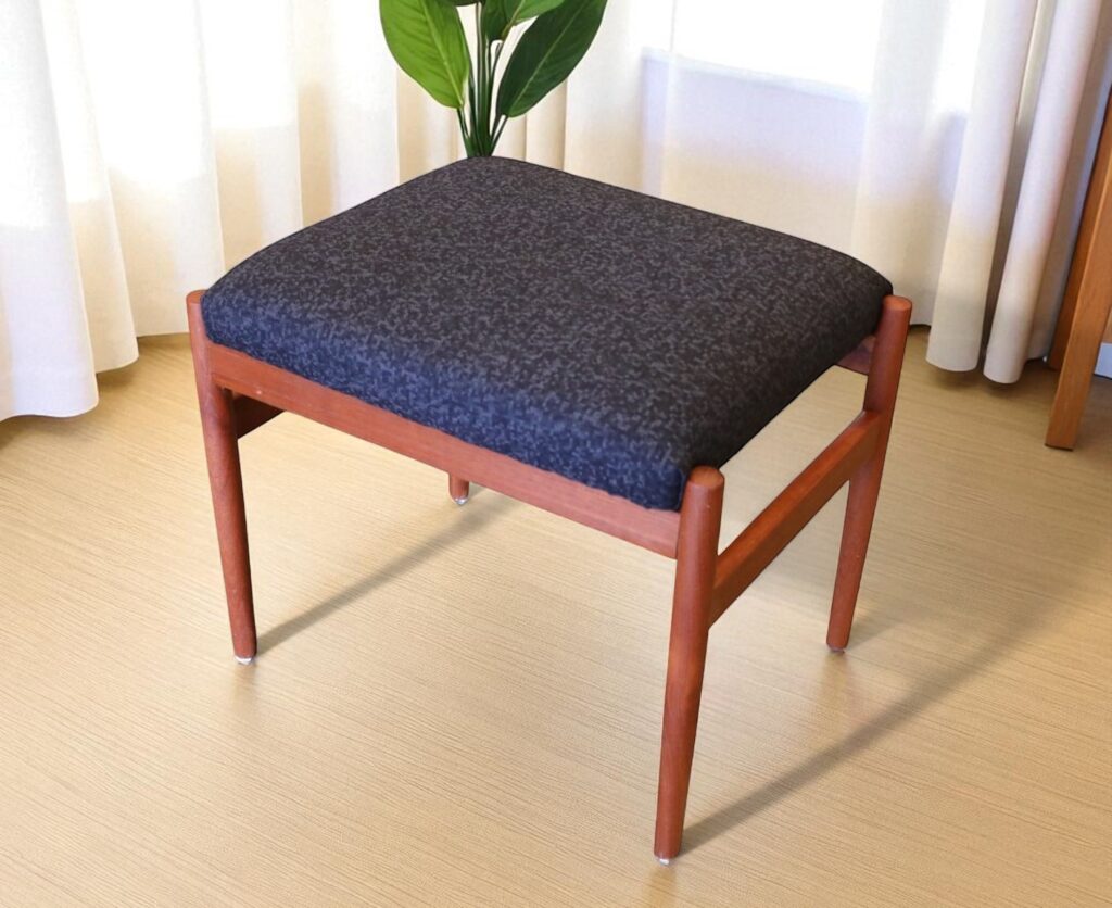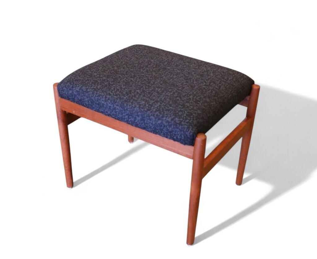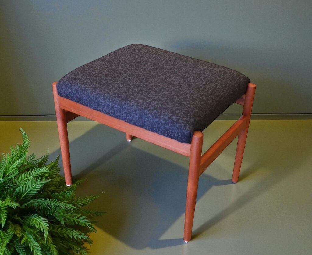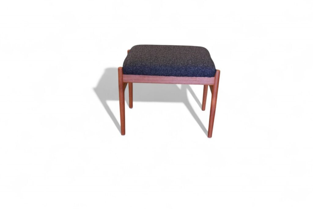 Pall i teak från danska företaget Spottrup med runda avsmalnande ben som är kopplade vilket gör pallen riktigt stadig.