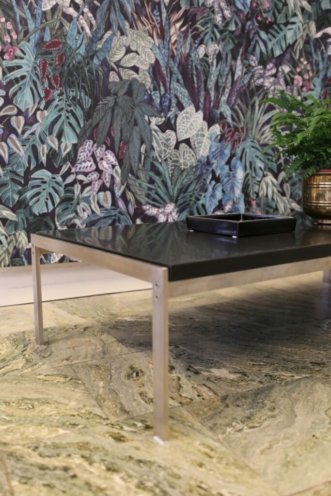 Bordet är minimalistiskt och tidlöst som alltid när Poul Kjærholm är formgivare. Likt hans övriga möbler i de mycket exklusiva möbelkollektionerna har även PK63A en markerande benställning av satinborstat rostfritt stål som står i en uppseendeväckande kontrast mot bordsskivan som är i skiffer.
