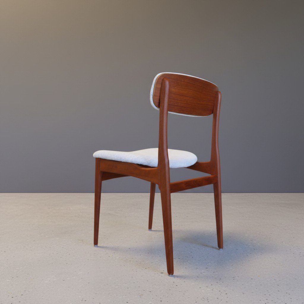 Rasmussen för Thorsø Mobelfabrik stol i teak med klädd rygg. 46 cm bred