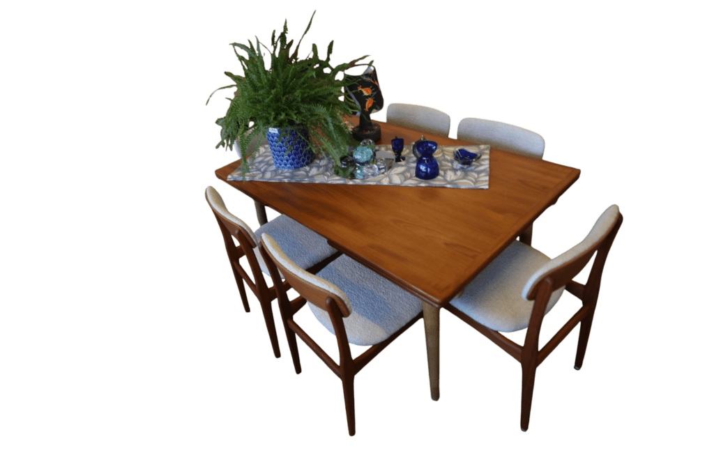 Stolen har sits och framrygg klädd i ett bouclétyg som har en linnefärgad mjuk ton. det ger stlen en modern touch samtidigt har stolen den oslagbara kvalitet som kännetecknade möblerna som tillverkades förr i tiden. Denna kvalitet är inbyggd i både formgivningen och hållbarheten, vilket gör att stolen är ett utmärkt val för den som värdesätter tidlös design och hållbara materialval. Med sin eleganta och genomtänkta stil kommer stolen att passa perfekt in i ditt hem, och den kommer att fortsätta att vara en iögonfallande möbel i många år framöver.