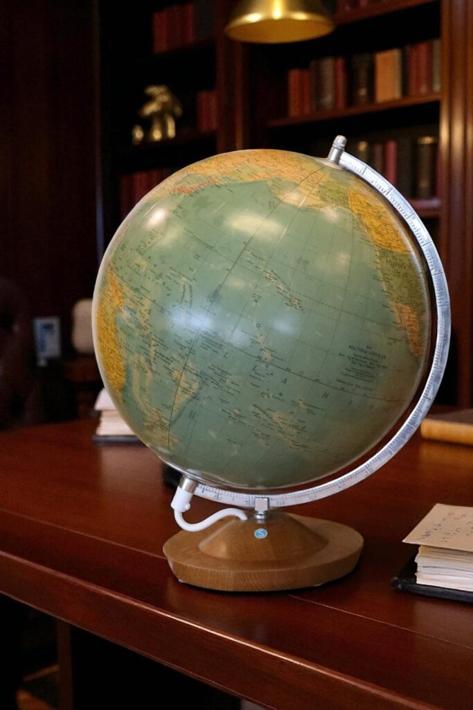 Troligen den mest vackra lampan man kan tänka sig och tack vare att globen är i glas finns inga vågräta skarvar på kartan!