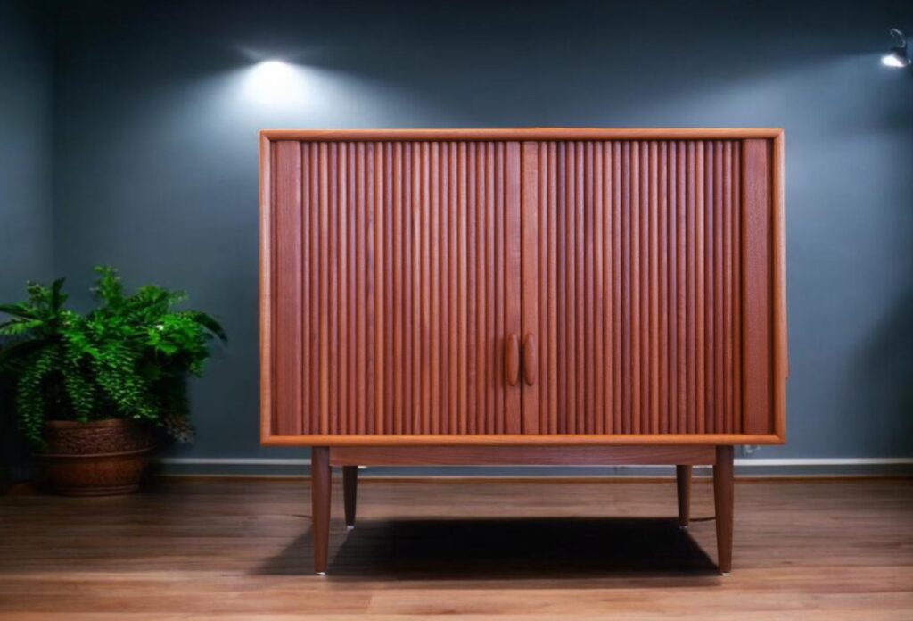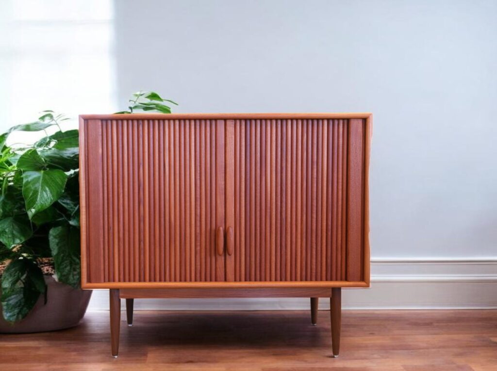 Det här är verkligen en underbar möbel som utmärker sig med sin design, sina fina detaljer och sin gedigna känsla. Skåpet är tillverkat av RT Möbel i Tyskland och gjort i teak som ger ett tidlöst, varmt och stabilt intryck.