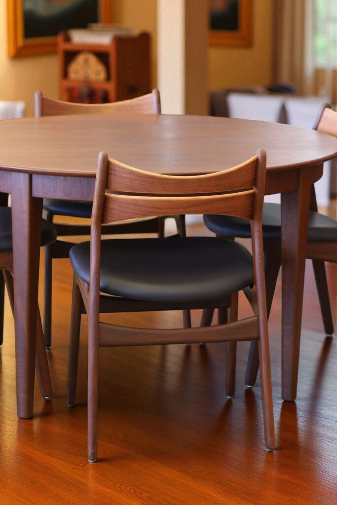 En mycket exklusiv och välarbetad stol med en stomme i massiv oljad teak, som ger en robust och elegant känsla. I de här fyra stolar är det en ljusare ton på stommen än vanligt Stolarna kombinerar både stil och komfort, och gör dem till ett utmärkt val för det sofistikerade hemmet.