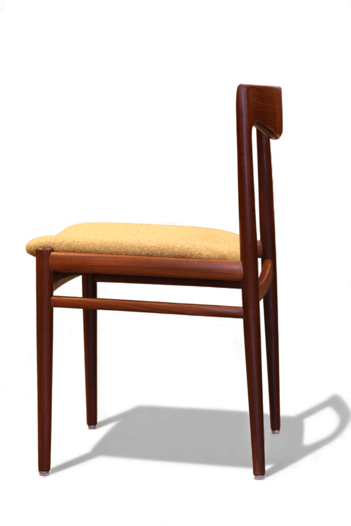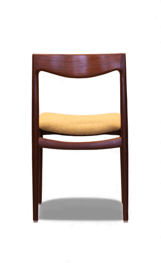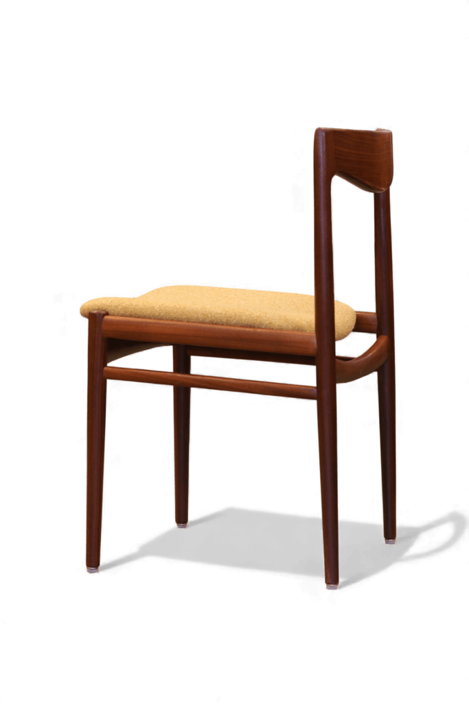 Stolsmodellen har spolformade fram- och bakben som är både stiliga och funktionella, där bakbenen elegant ansluter sig till ryggdelen. Ryggdelen i sin tur är mjukt rundad och utgör ett verkligt mästerverk, som förtjänar att beundras, se bilderna! Alla delar på stolen är mjukt och behagligt rundade, vilket skapar en harmonisk design och gör att stolen både ser fantastisk ut och känns mycket bekväm att sitta på under långa stunder.